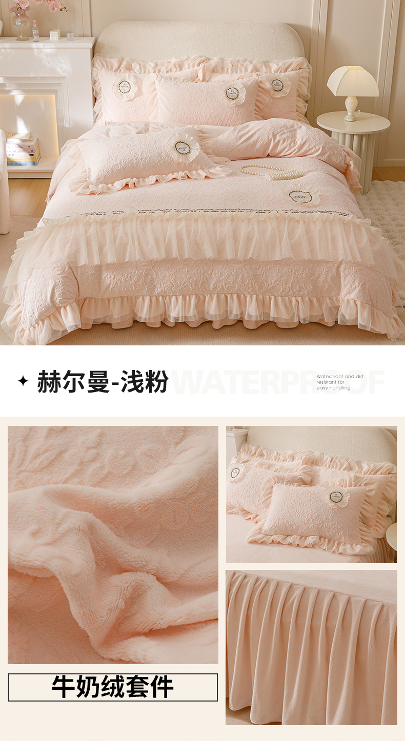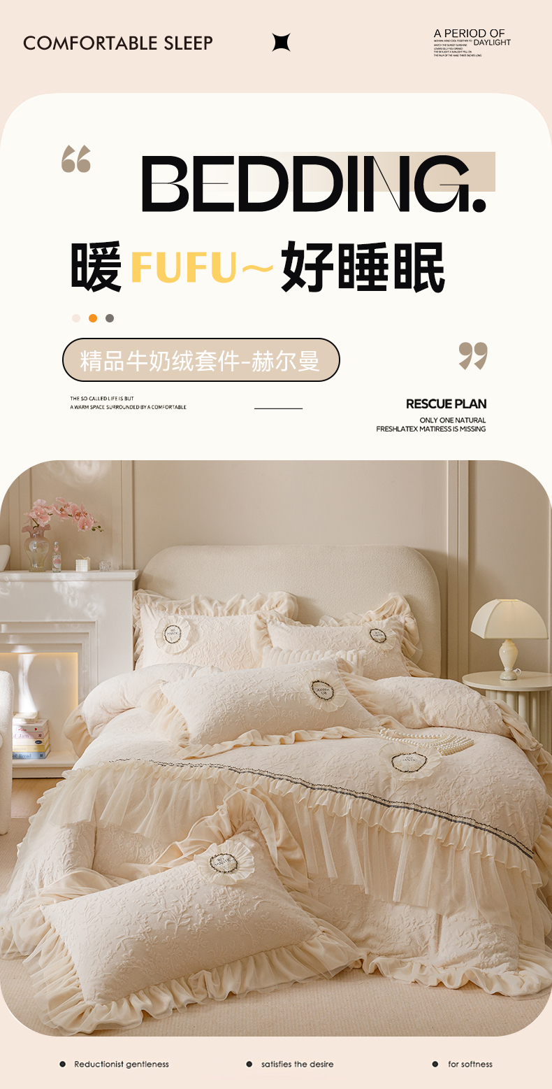 (总)好儿喜家纺 2025新款牛奶绒四件套冬季雕花绒保暖舒适被套加厚牛奶绒床上用品-赫尔曼