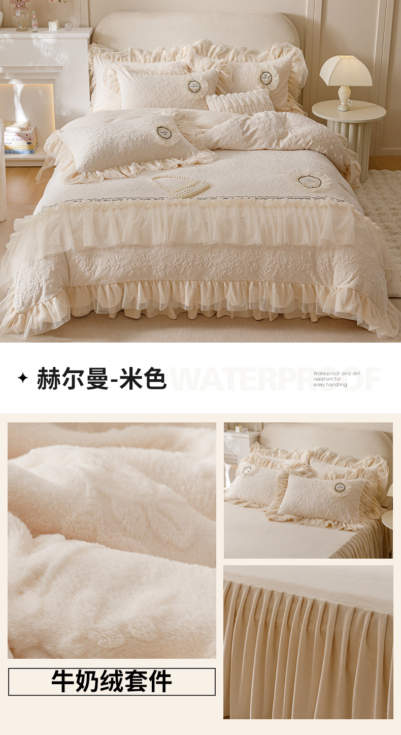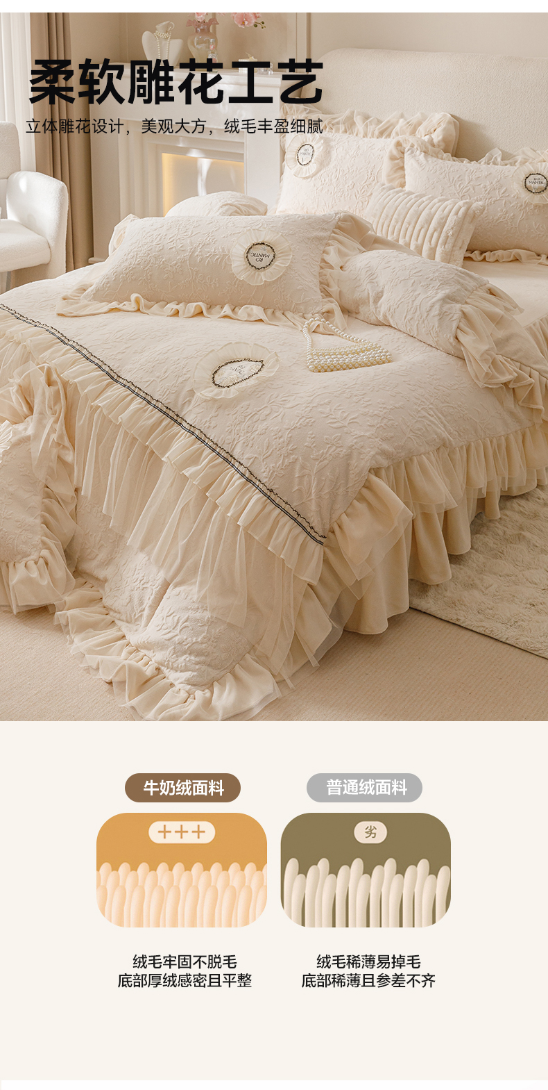 商品名称:(总)好儿喜家纺 2025新款牛奶绒四件套冬季雕花绒保暖舒适被套加厚牛奶绒床上用品-赫尔曼