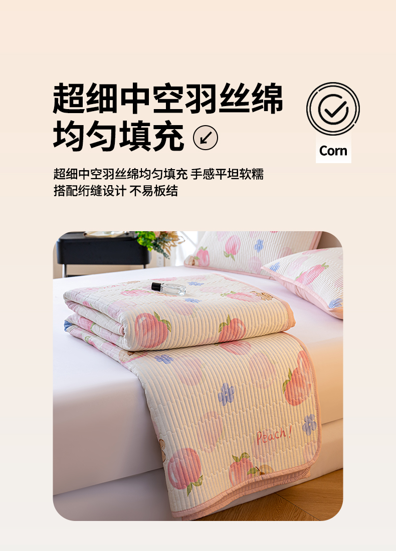 X猫先生 2025新款全棉床盖小清新夹棉水洗炕盖床盖套件-跑量款 蜜桃松鼠