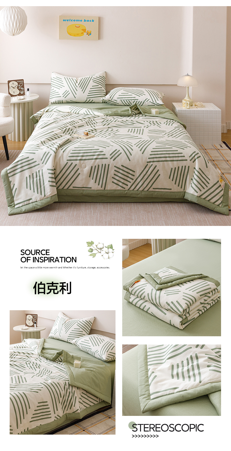(总)一加一 2025新款全棉色织简约风艾阳绒抗菌被芯,浅兰韵律,桃之夭天,悠然时光