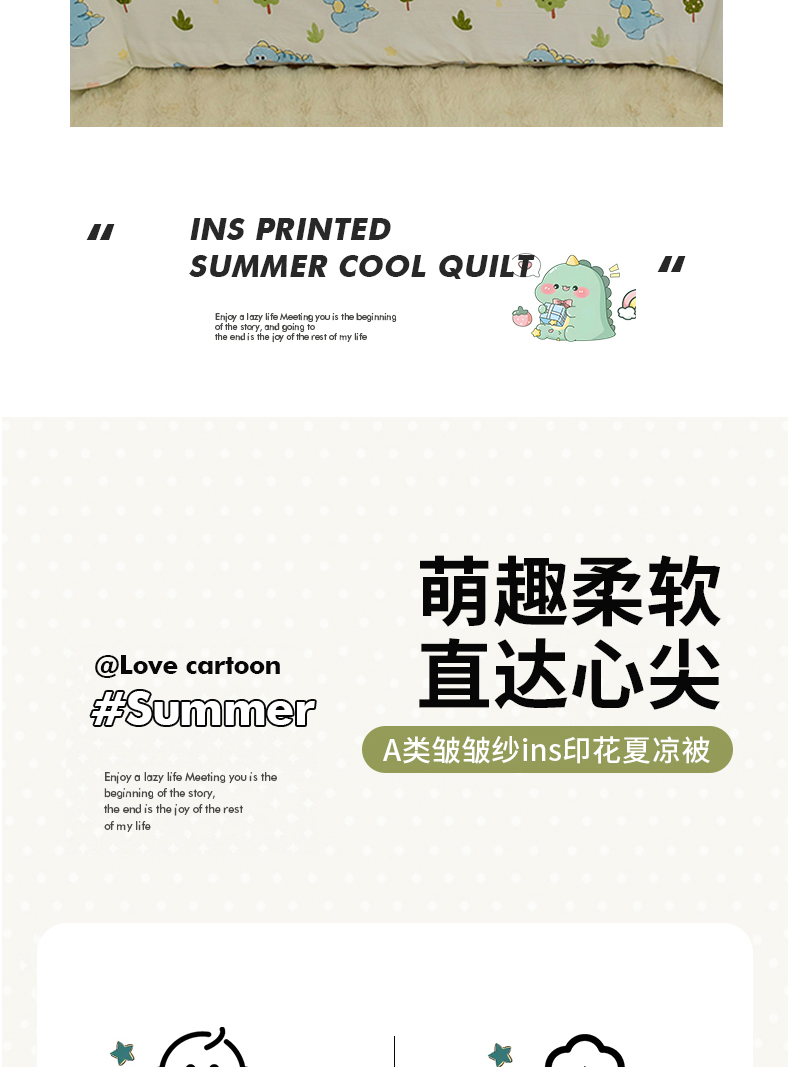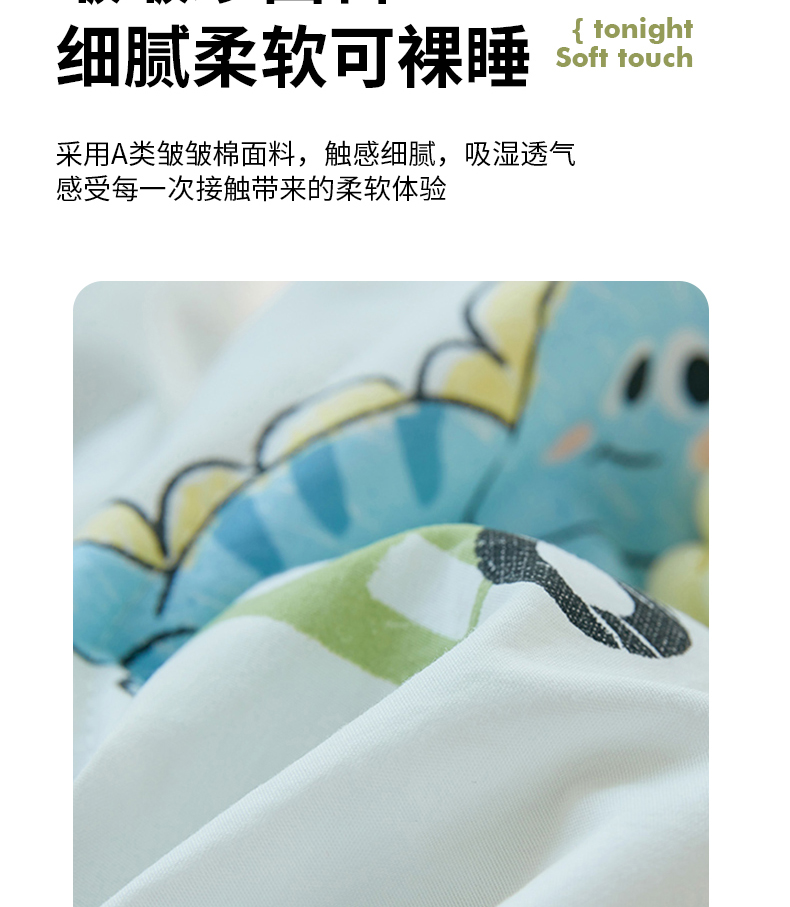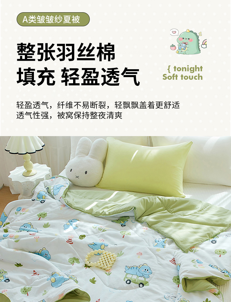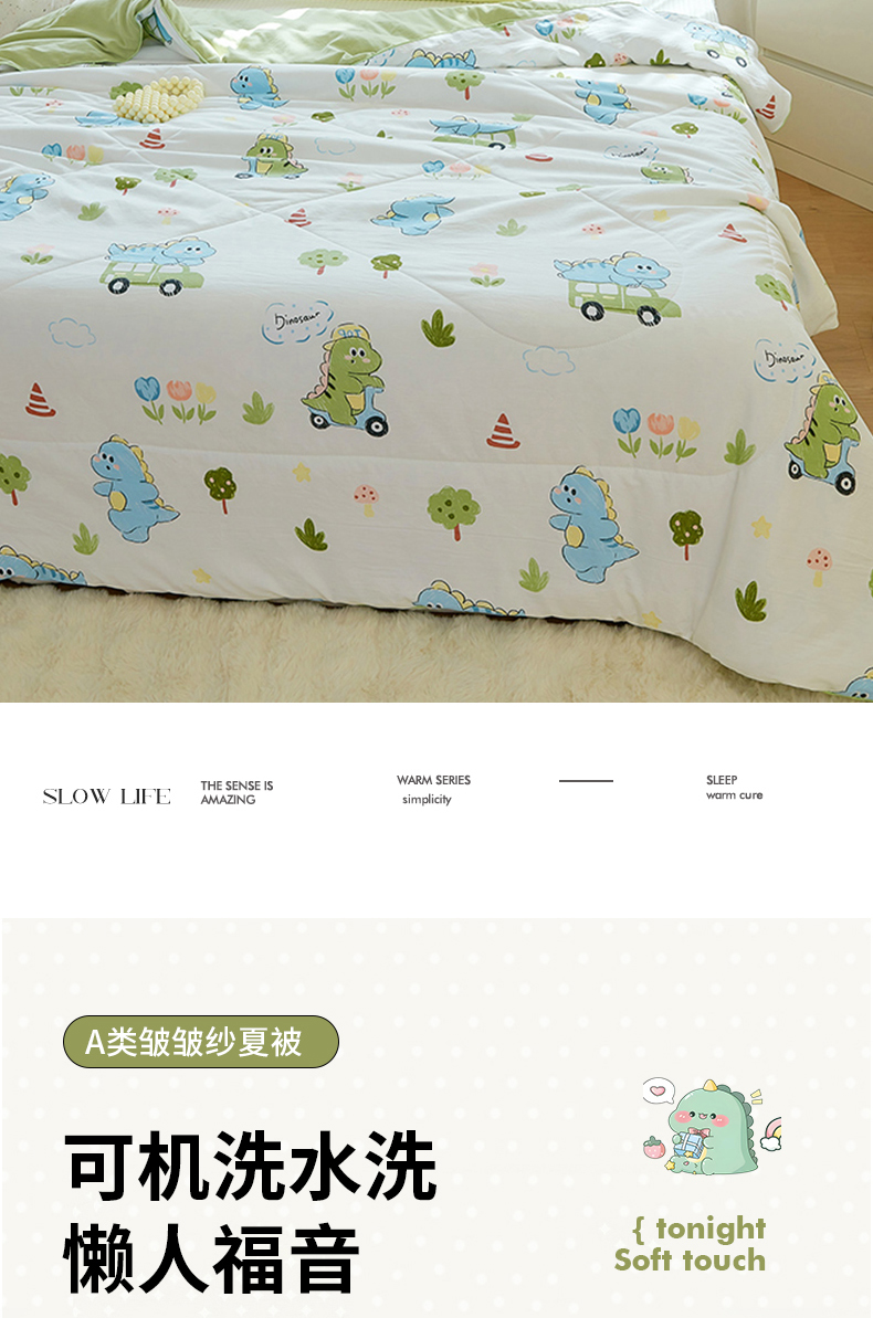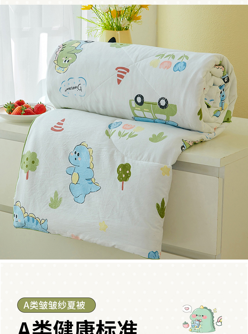 商品名称:梦恬佳 2025新款A类水洗皱皱棉夏凉被 恐龙乐园