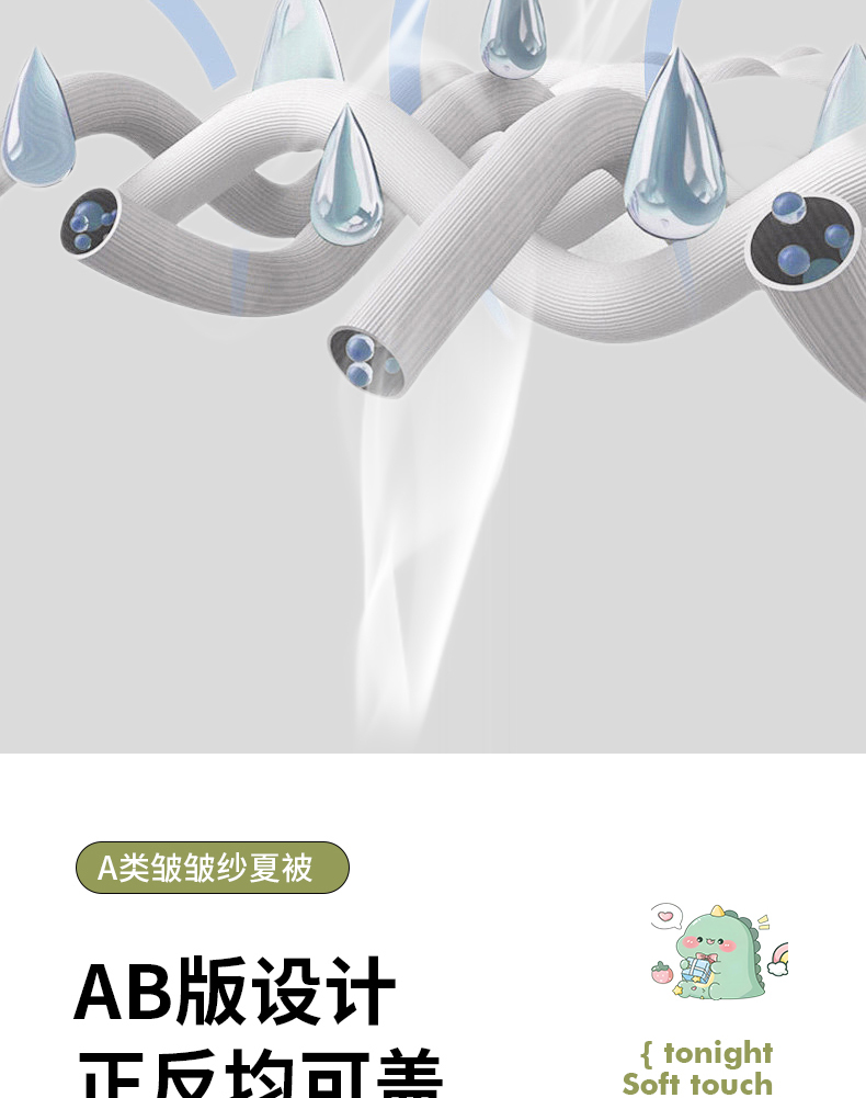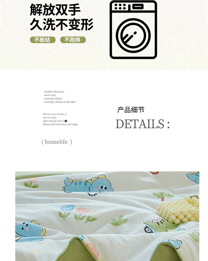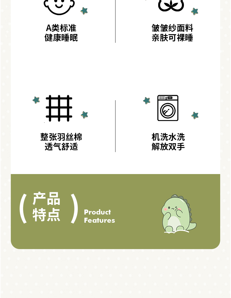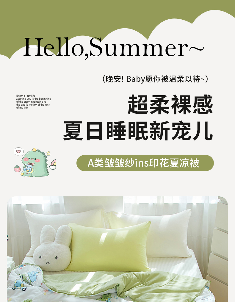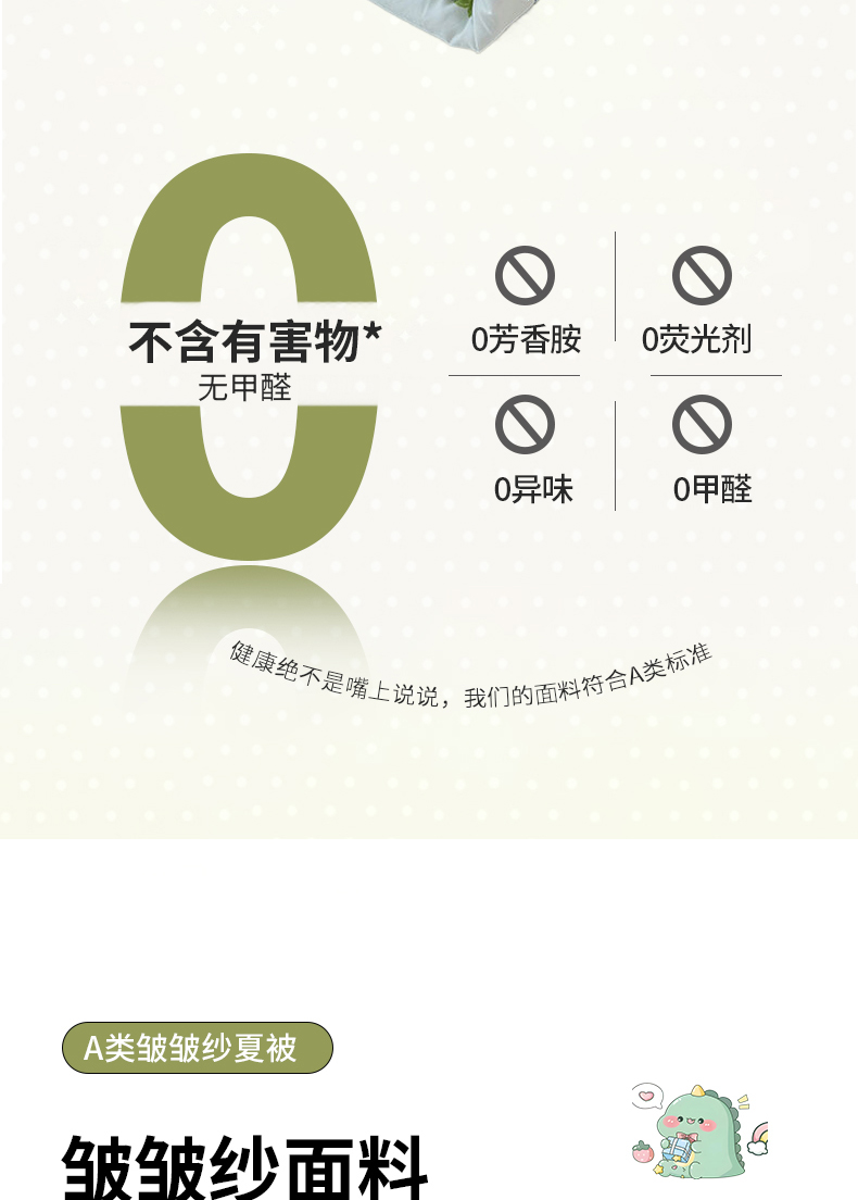 商品名称:梦恬佳 2025新款A类水洗皱皱棉夏凉被 恐龙乐园