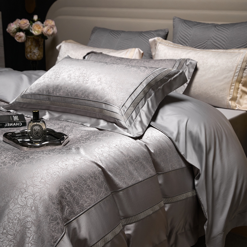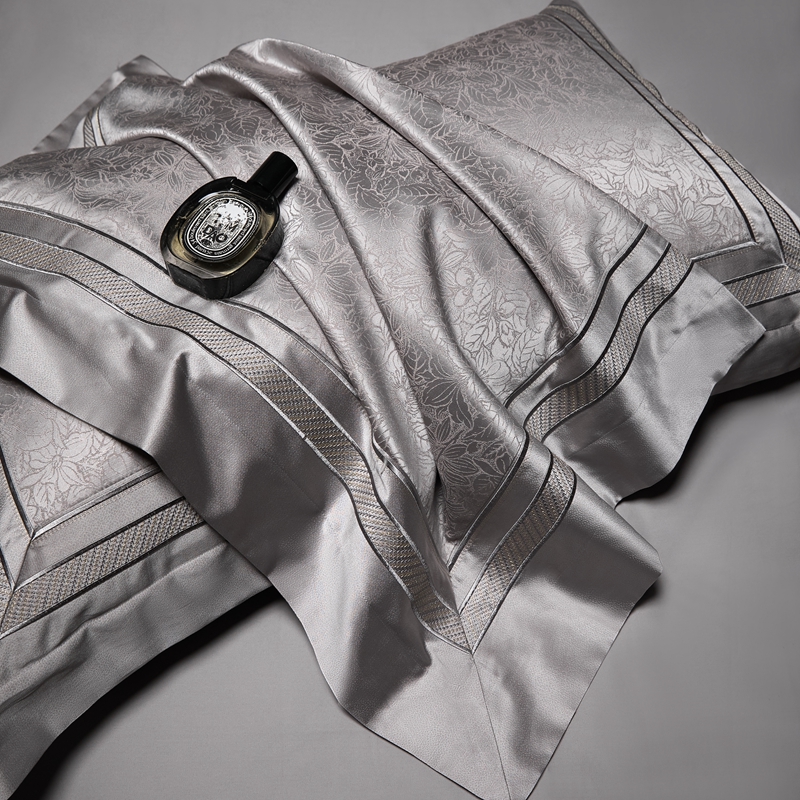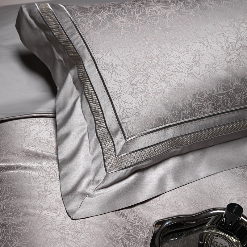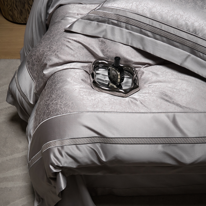 总榻尚家居 2023新款格瑞斯系列100贡缎长绒棉四件套工艺款四件套,格瑞斯紫,格瑞斯白,格瑞斯灰,格瑞斯蓝