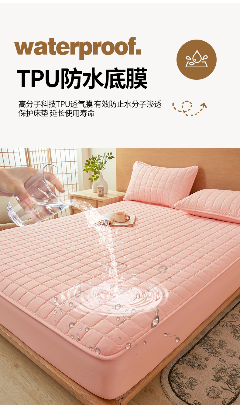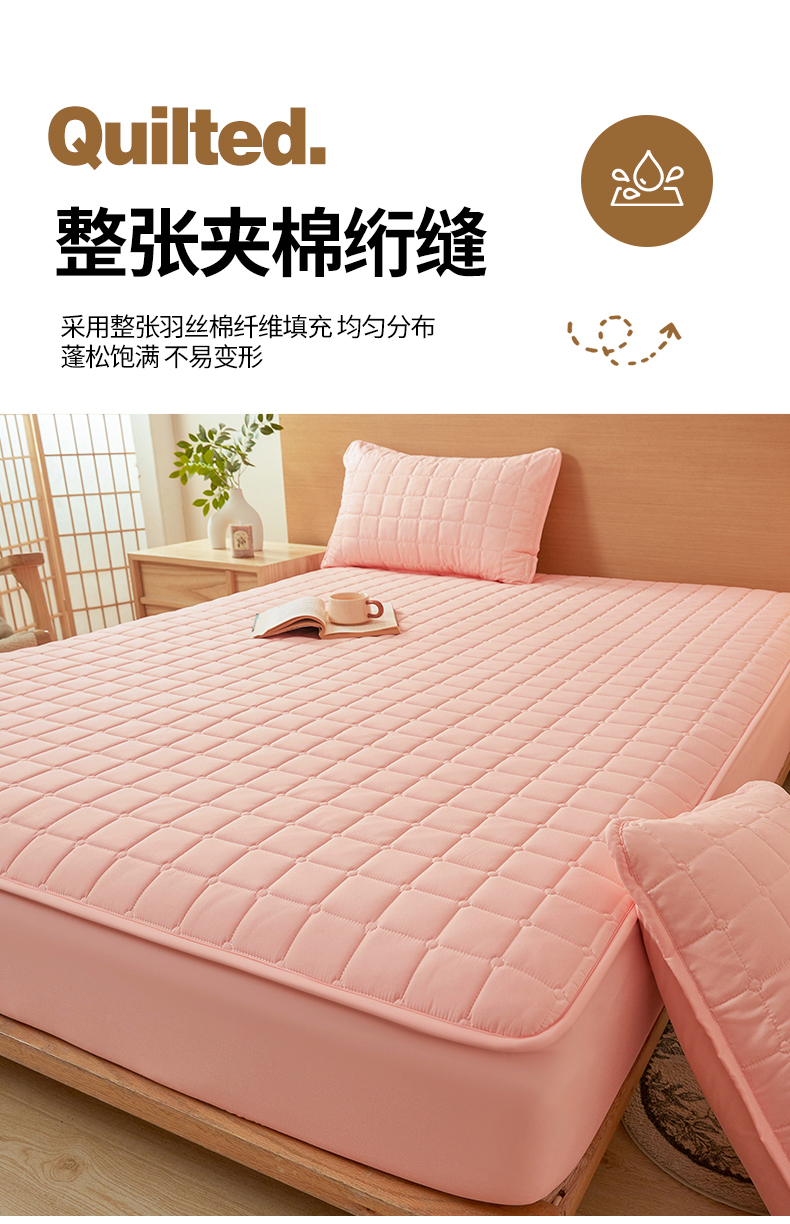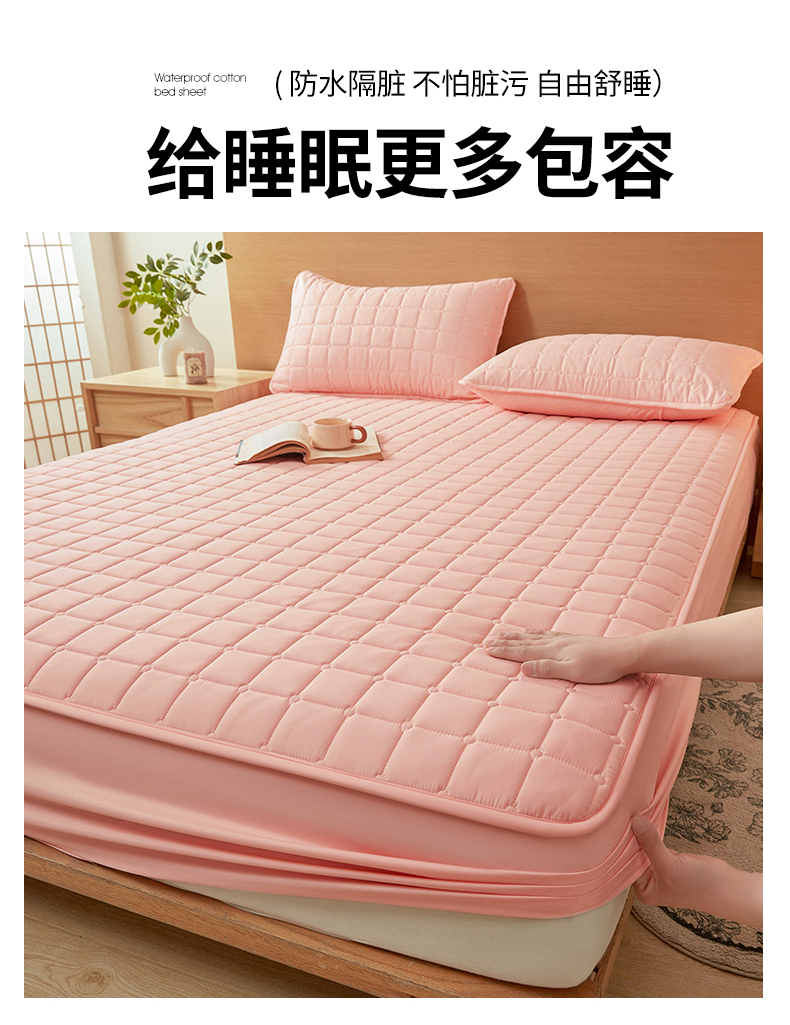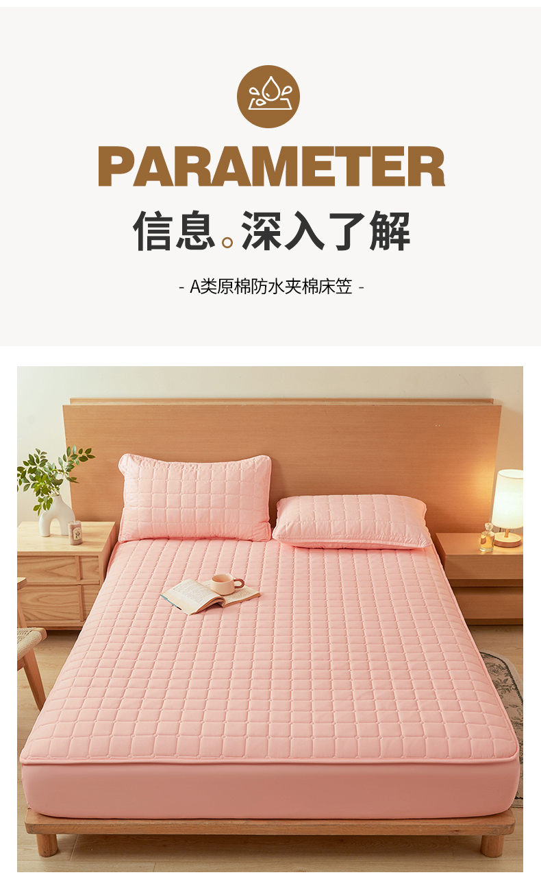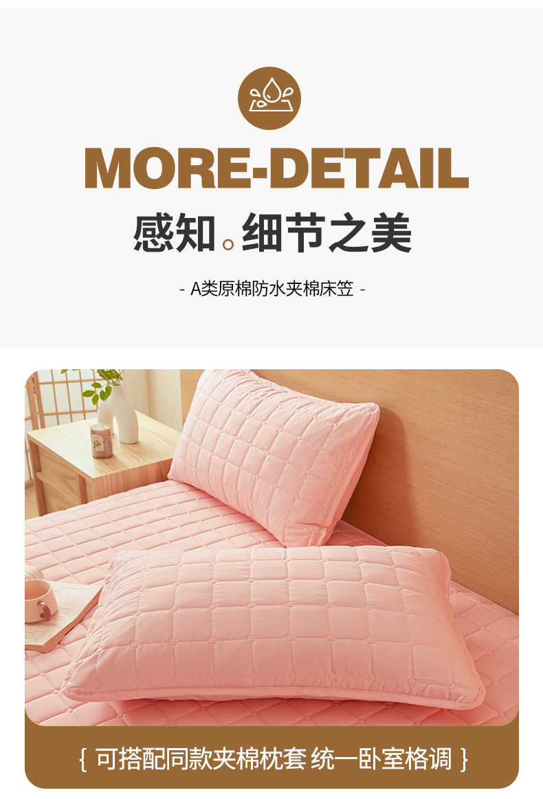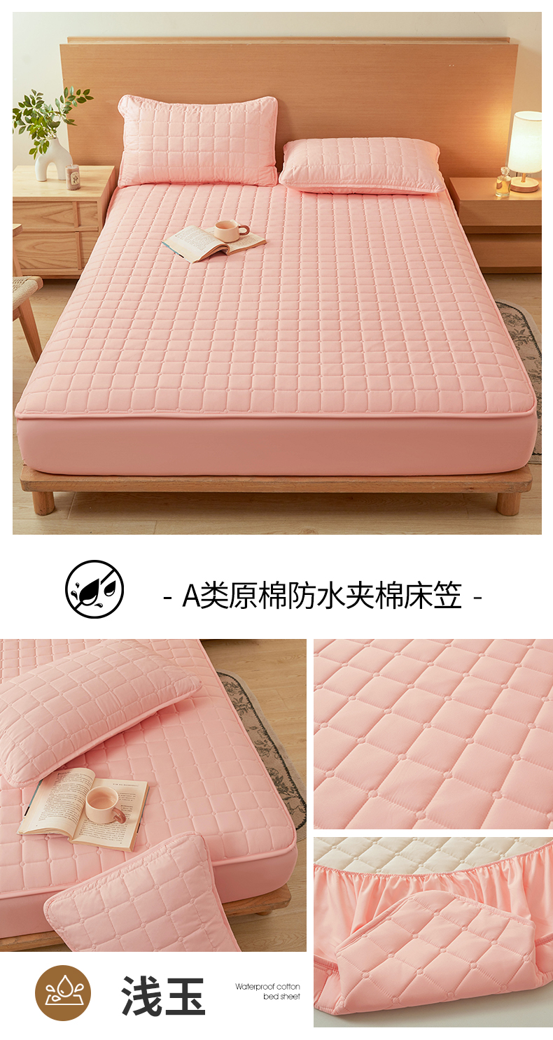 魅图家纺 2025新款A类原棉防水夹棉床笠 浅玉