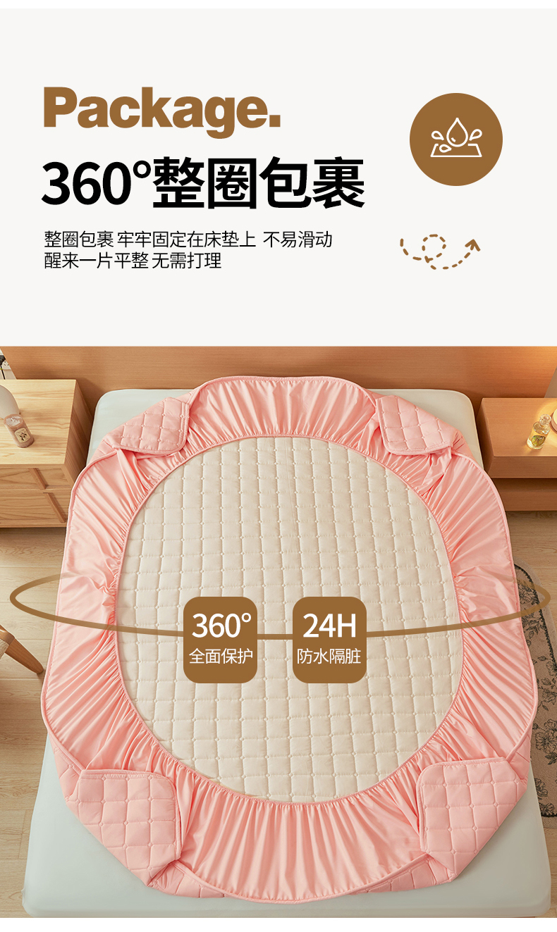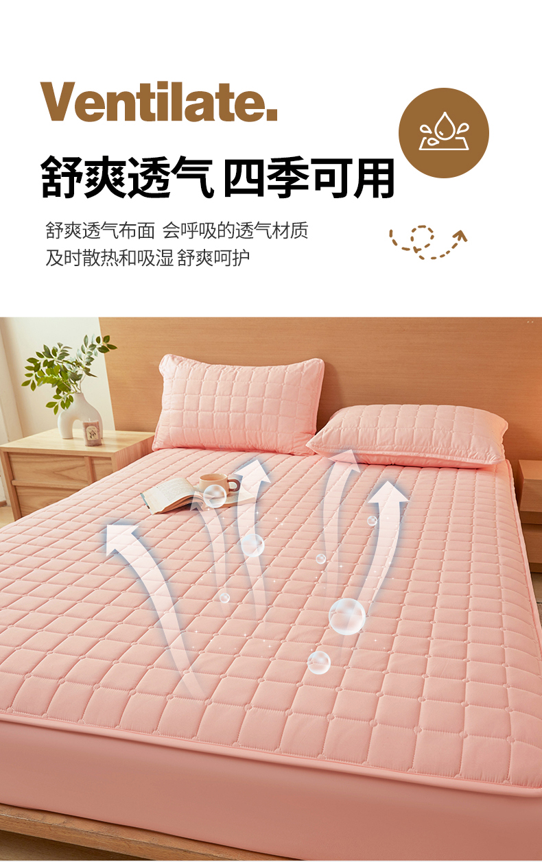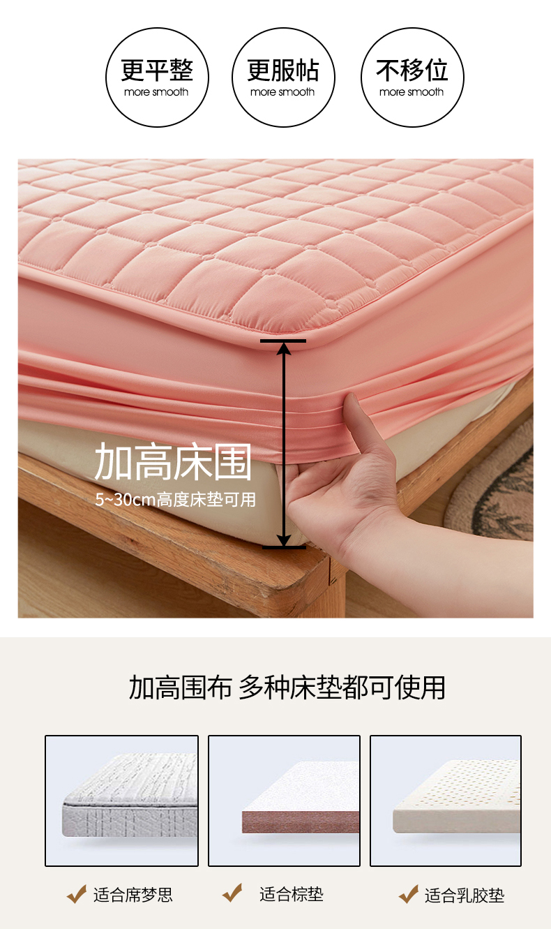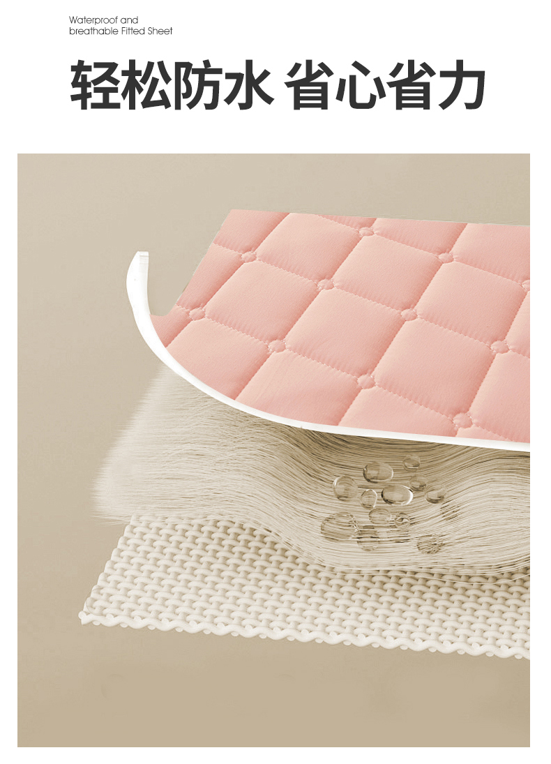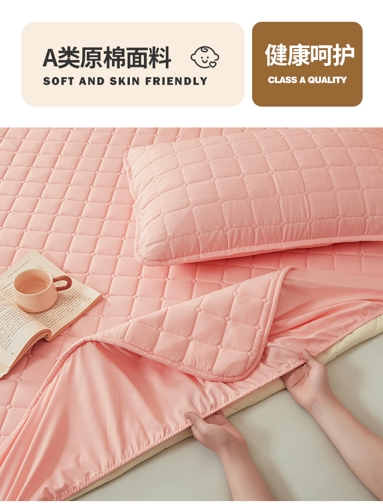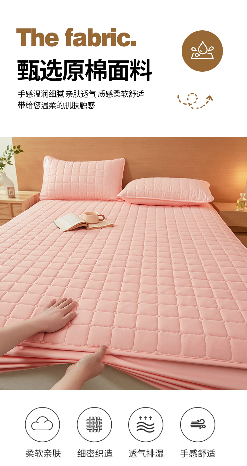 魅图家纺 2025新款A类原棉防水夹棉床笠 浅玉