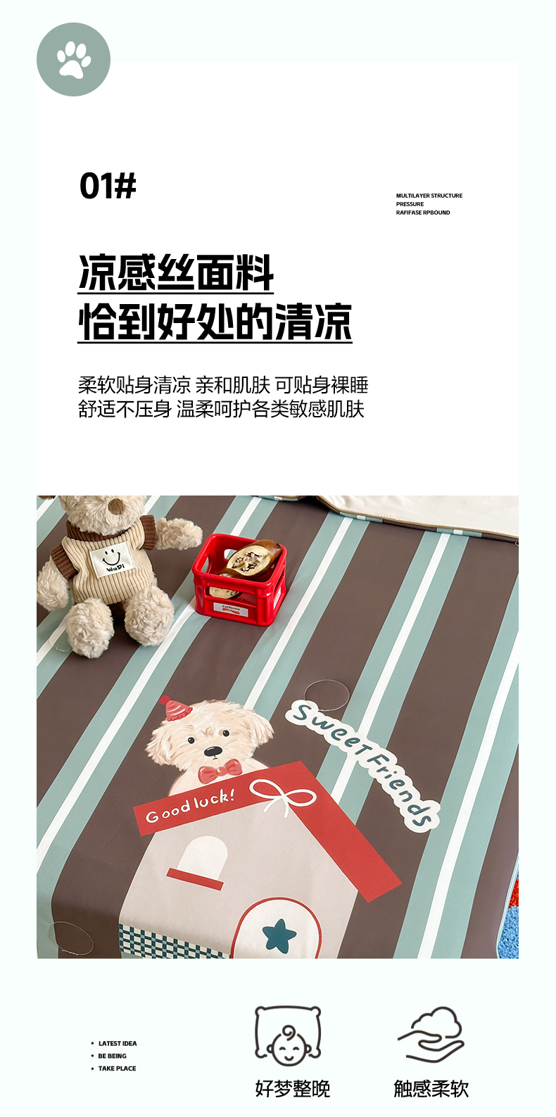 商品名称:RYB红黄兰 A类2025新款INS原创大版卡通锦氨冰皮夏被夏凉被空调被 泰迪小窝