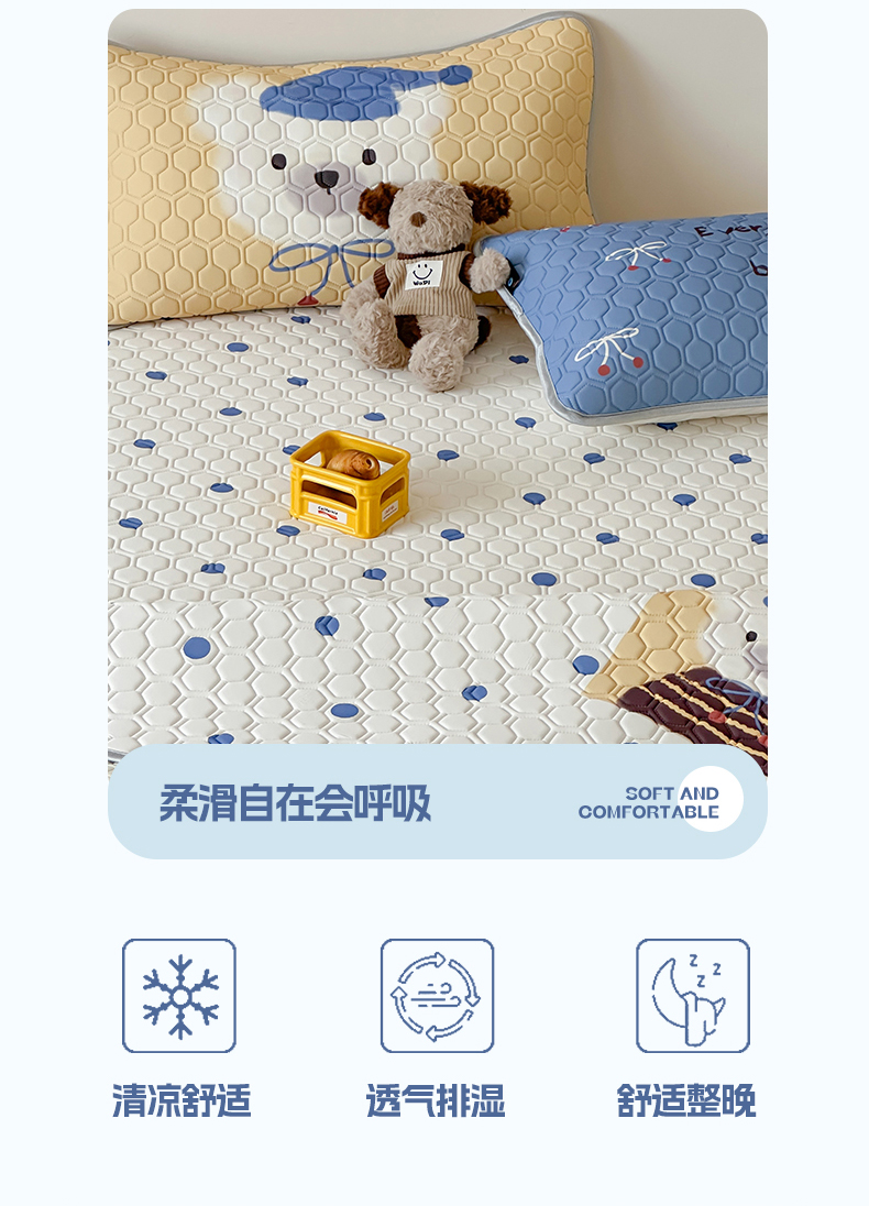 商品名称:RYB红黄兰 2025ins原创新款设计师款大版凉感水洗乳胶凉席三件套 波点熊仔