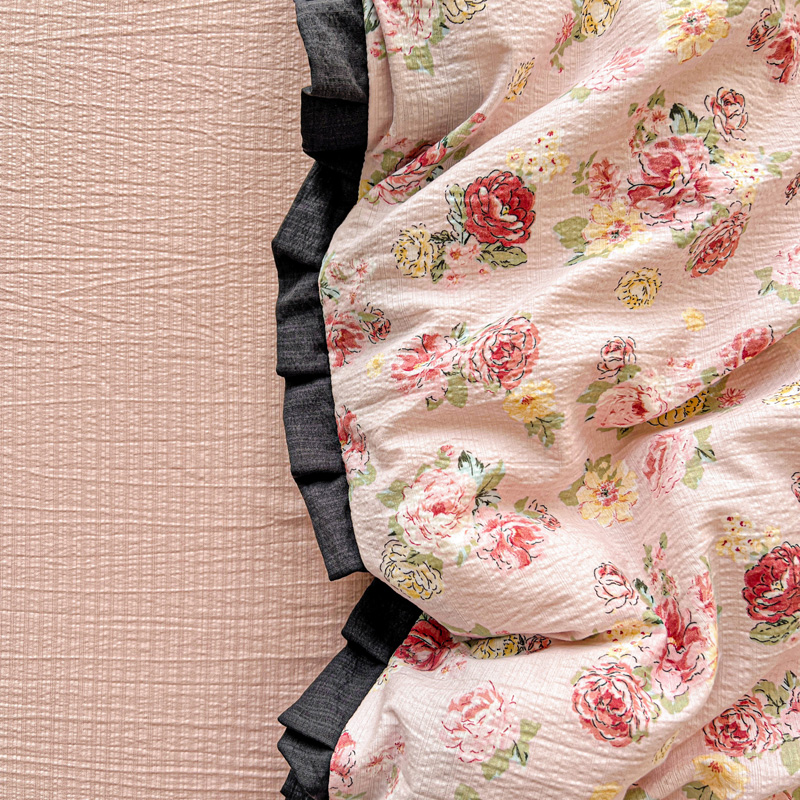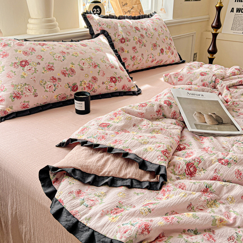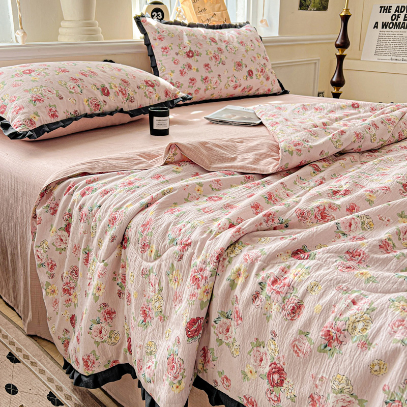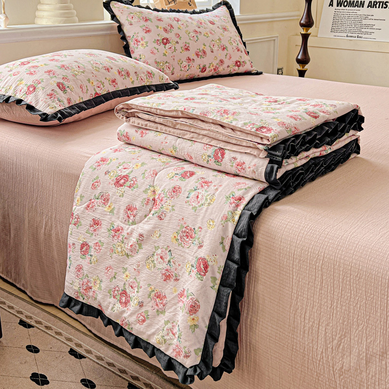 仟网汇2025新款赫本风花边夏被空调被 玫瑰花园粉
