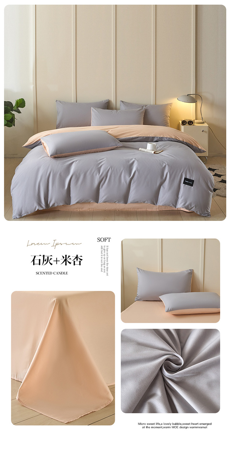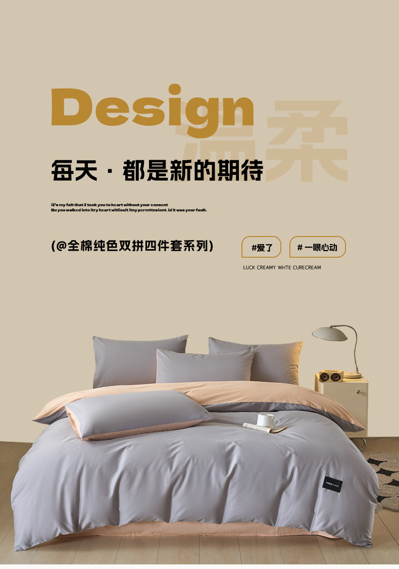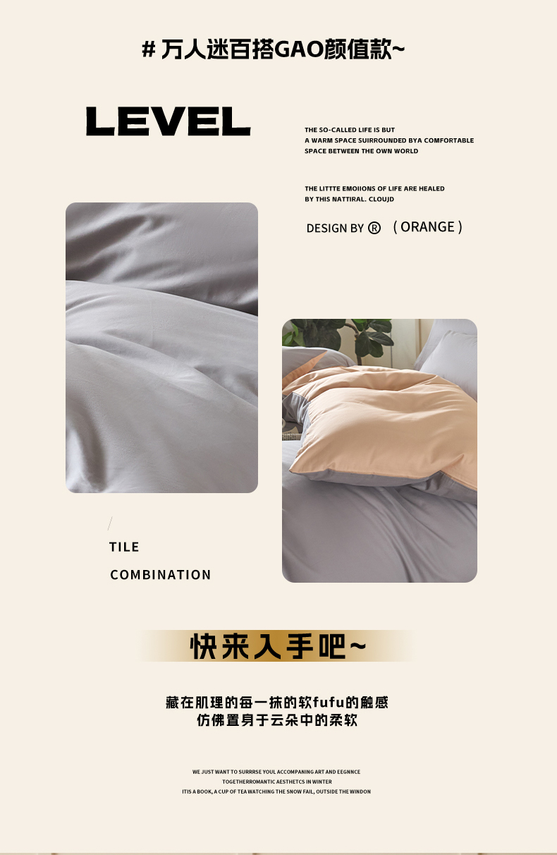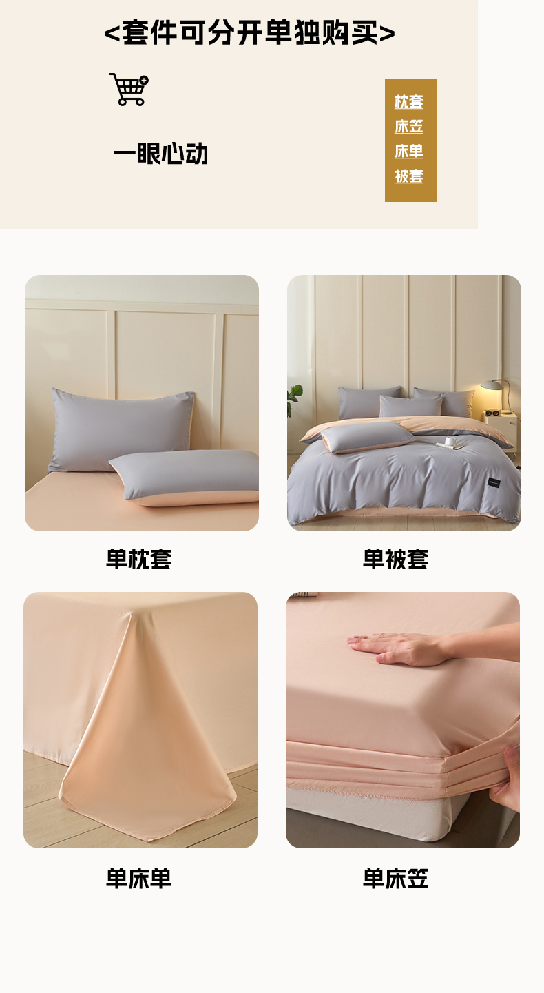 当前位置: 91家纺网 > 商品网购 > 床品套件 > 四件套 > 全棉普通四件套 > 乐美家纺 2025新款全棉纯棉纯色双拼多规格四件套 石灰+米杏