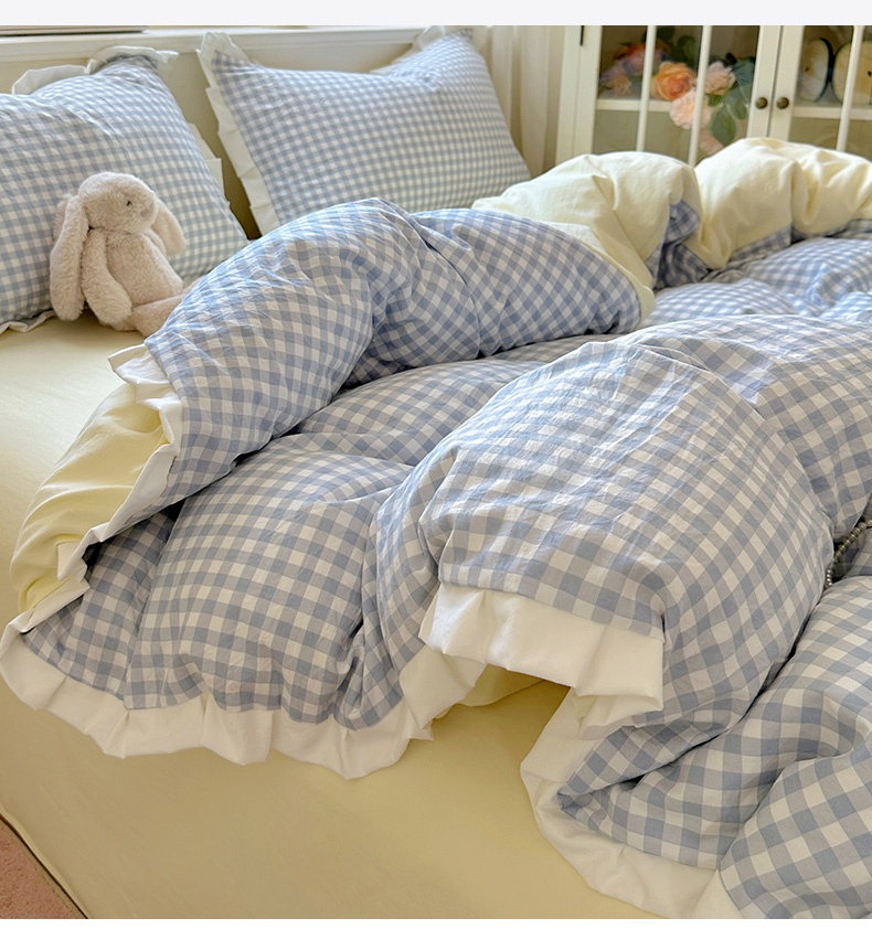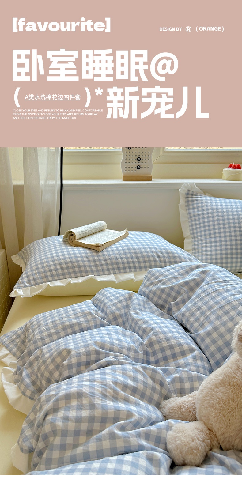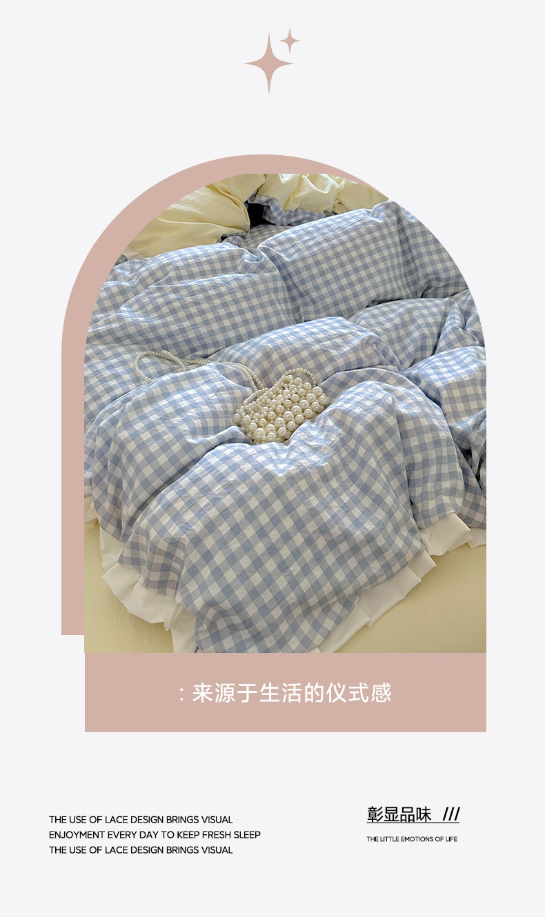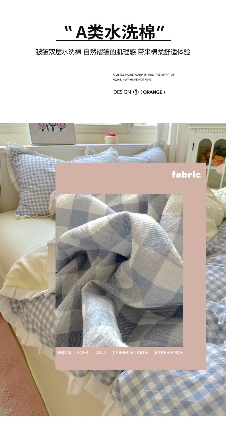 当前位置: 91家纺网 > 商品网购 > 床品套件 > 四件套 > 水洗棉四件套 > 冕悠家纺 2025新款少女心加厚超柔皱皱小花边水洗棉四件套(加微信提供买家秀 ) 公主-蓝格