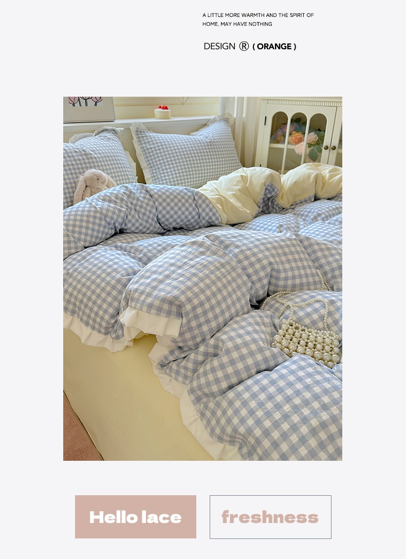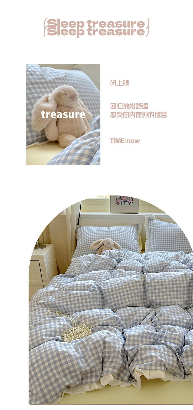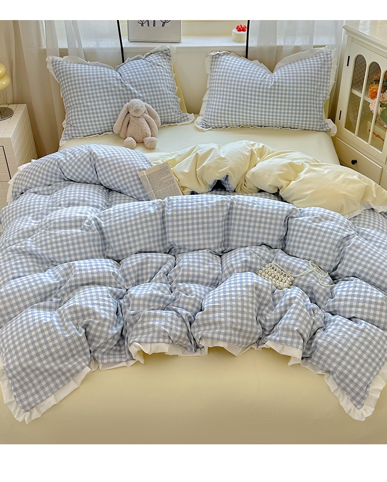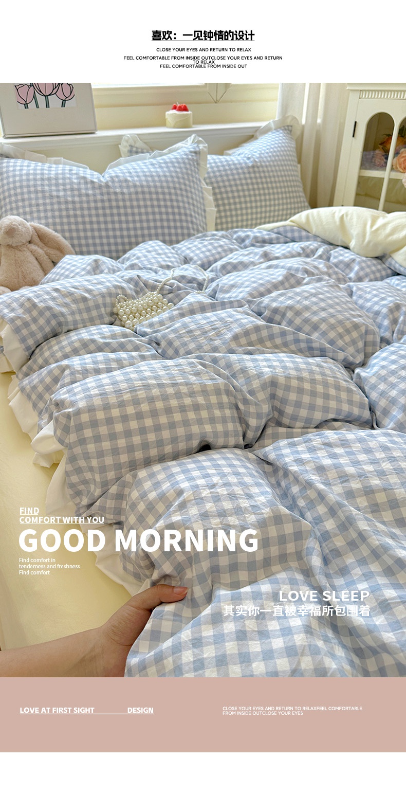 当前位置: 91家纺网 > 商品网购 > 床品套件 > 四件套 > 水洗棉四件套 > 冕悠家纺 2025新款少女心加厚超柔皱皱小花边水洗棉四件套(加微信提供买家秀 ) 公主-蓝格