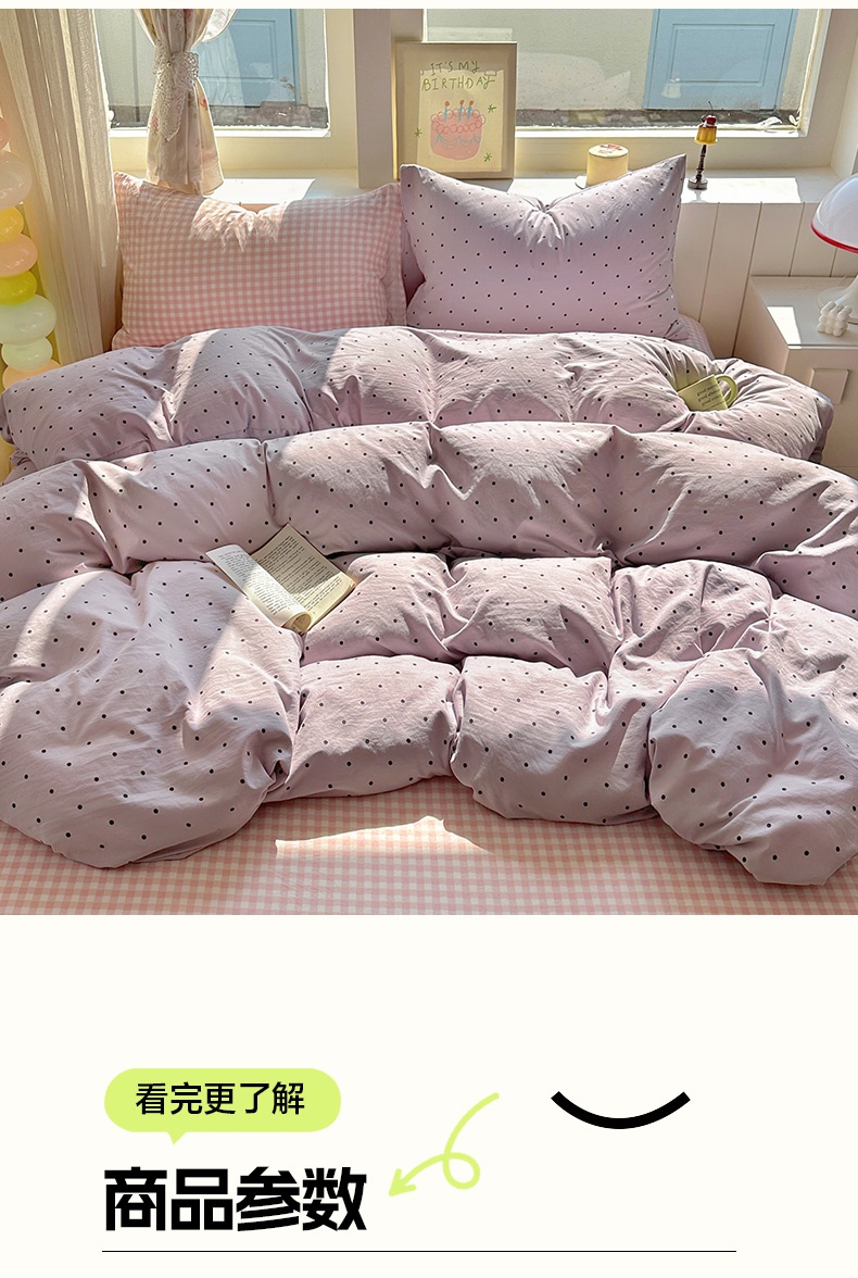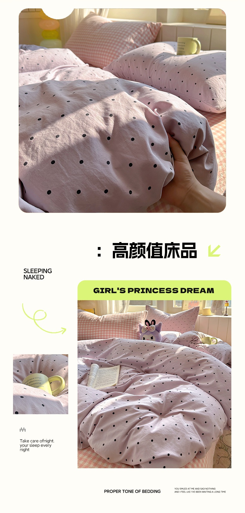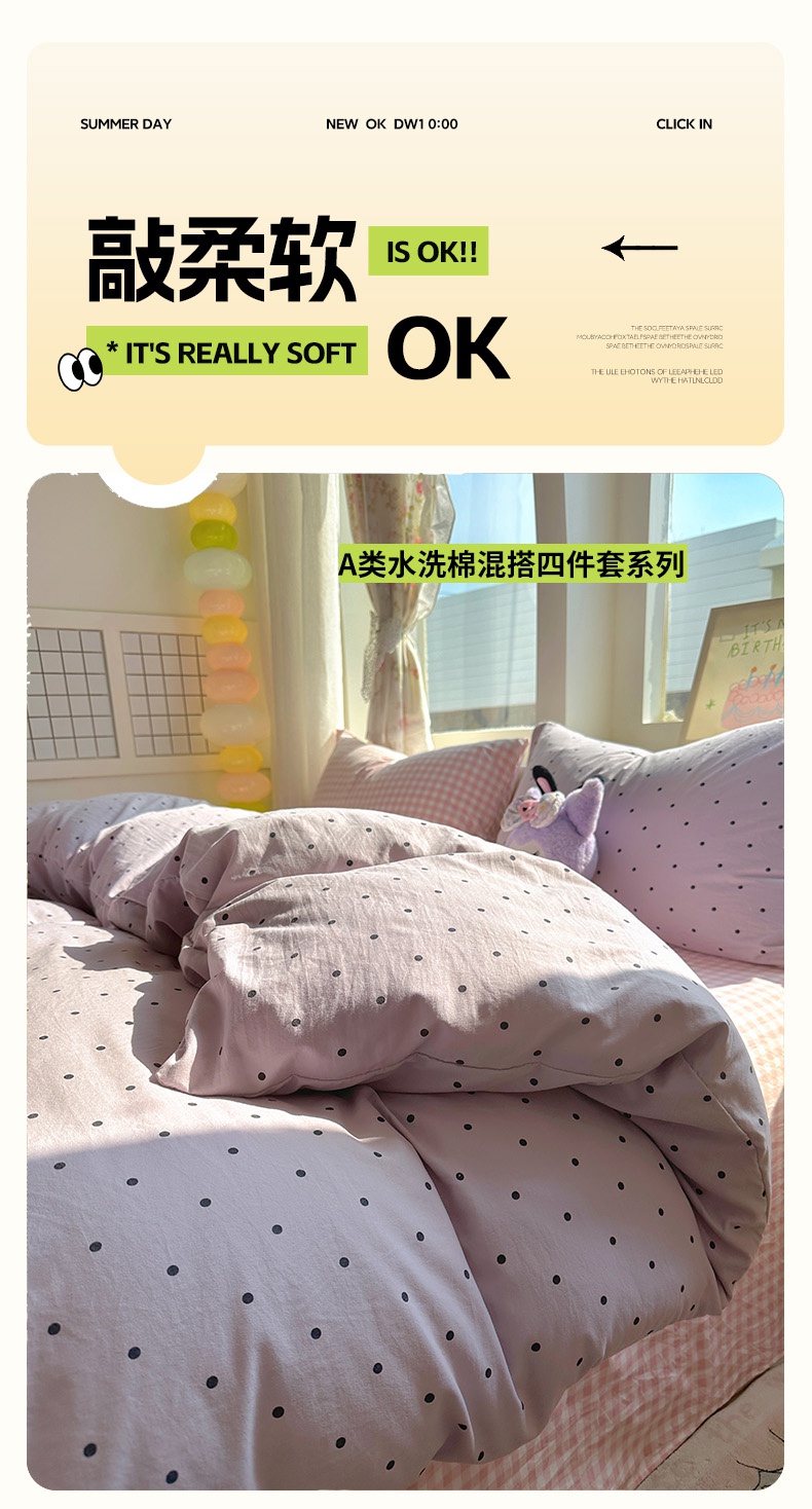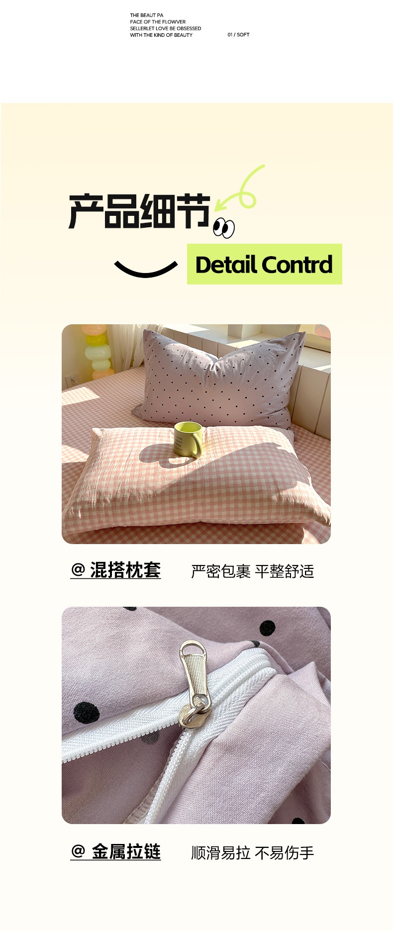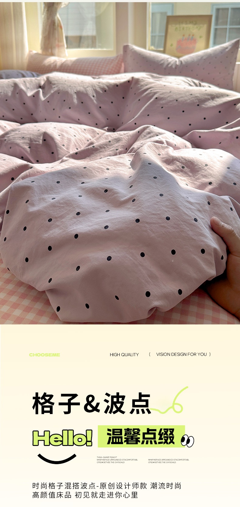 当前位置: 91家纺网 > 商品网购 > 床品套件 > 四件套 > 水洗棉四件套 > 冕悠家纺 2025新款少女心超柔加厚混搭格子水洗棉四件套(加微信提供买家秀 ) 紫点+粉格