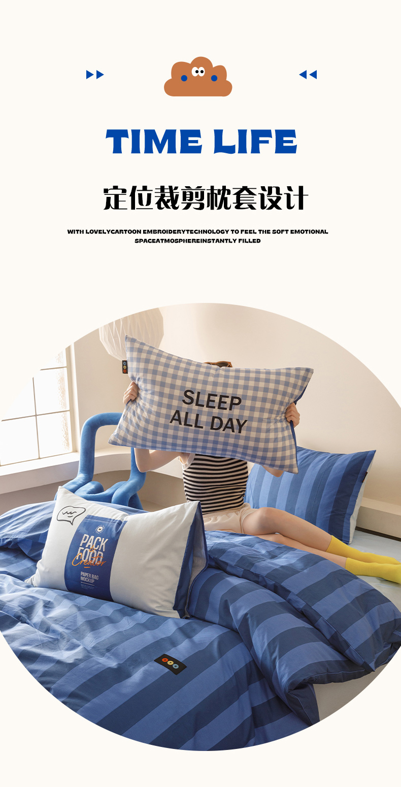 当前位置: 91家纺网 > 商品网购 > 床品套件 > 四件套 > 全棉普通四件套 > RYB红黄兰 2025新款ins慵懒风撞色系全棉四件套学生季宿舍床纯棉三件套 黑色唱片(枕套)