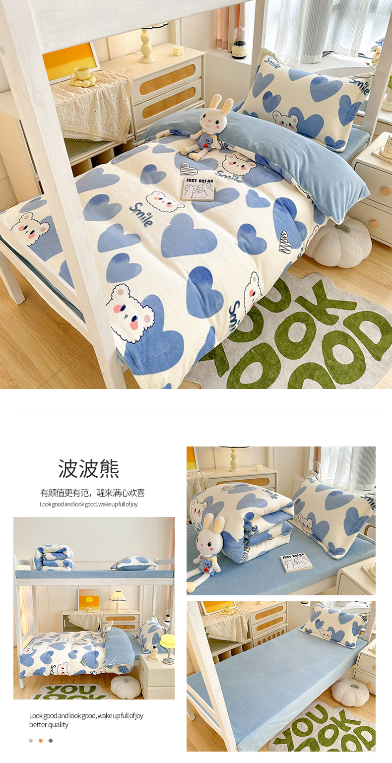 当前位置: 91家纺网 > 商品网购 > 床品套件 > 三件套 > 卡普二店 2024新款牛奶绒学生三件套系列 蝶舞格韵