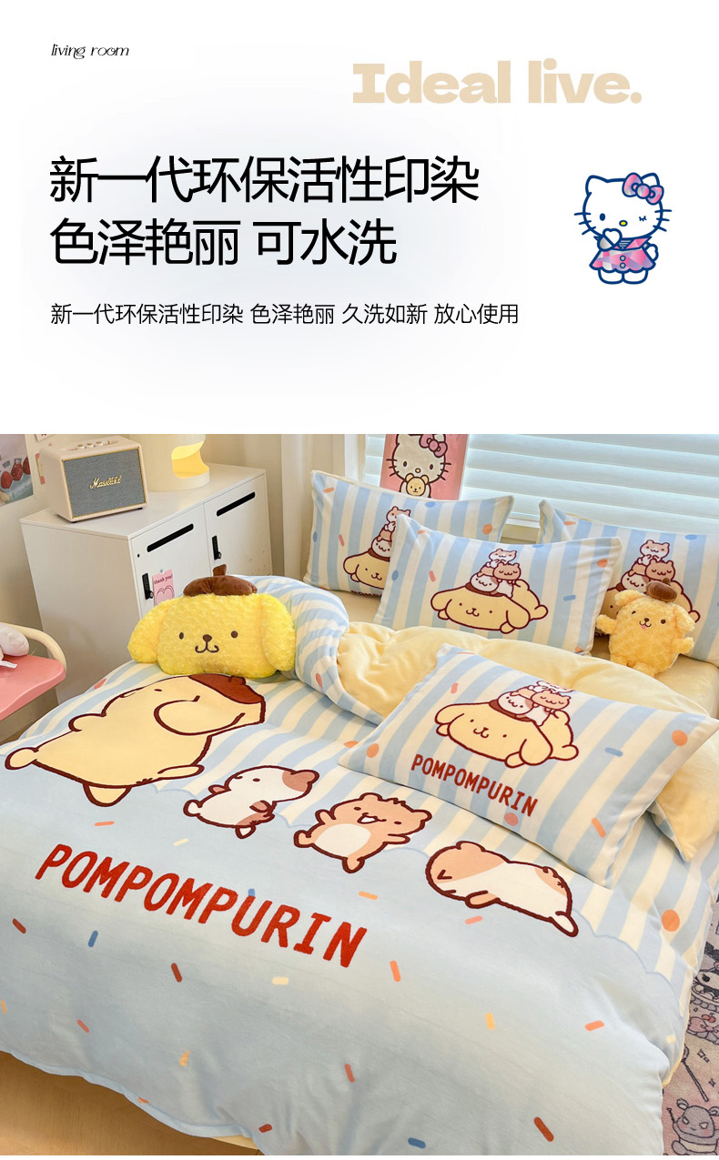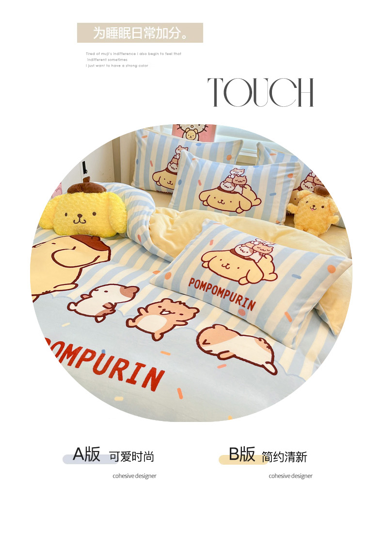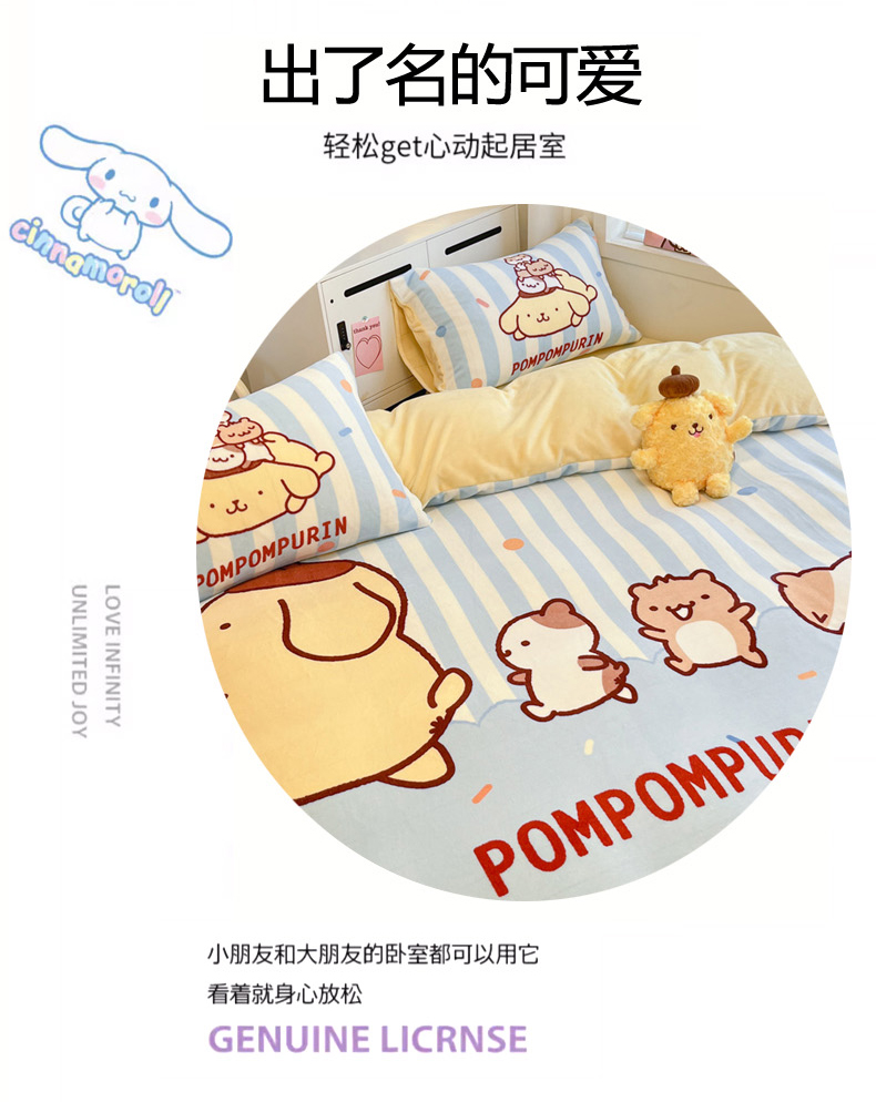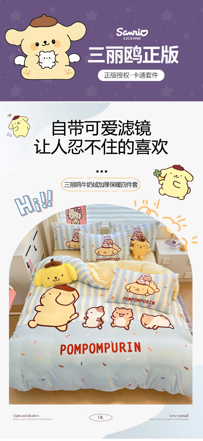当前位置: 91家纺网 > 商品网购 > 床品套件 > 四件套 > 牛奶绒四件套 > 暮思家居 2025新款正版授权三丽鸥大阪数码印花高克重加厚保暖牛奶绒四件套 绒大阪-布丁狗伙伴