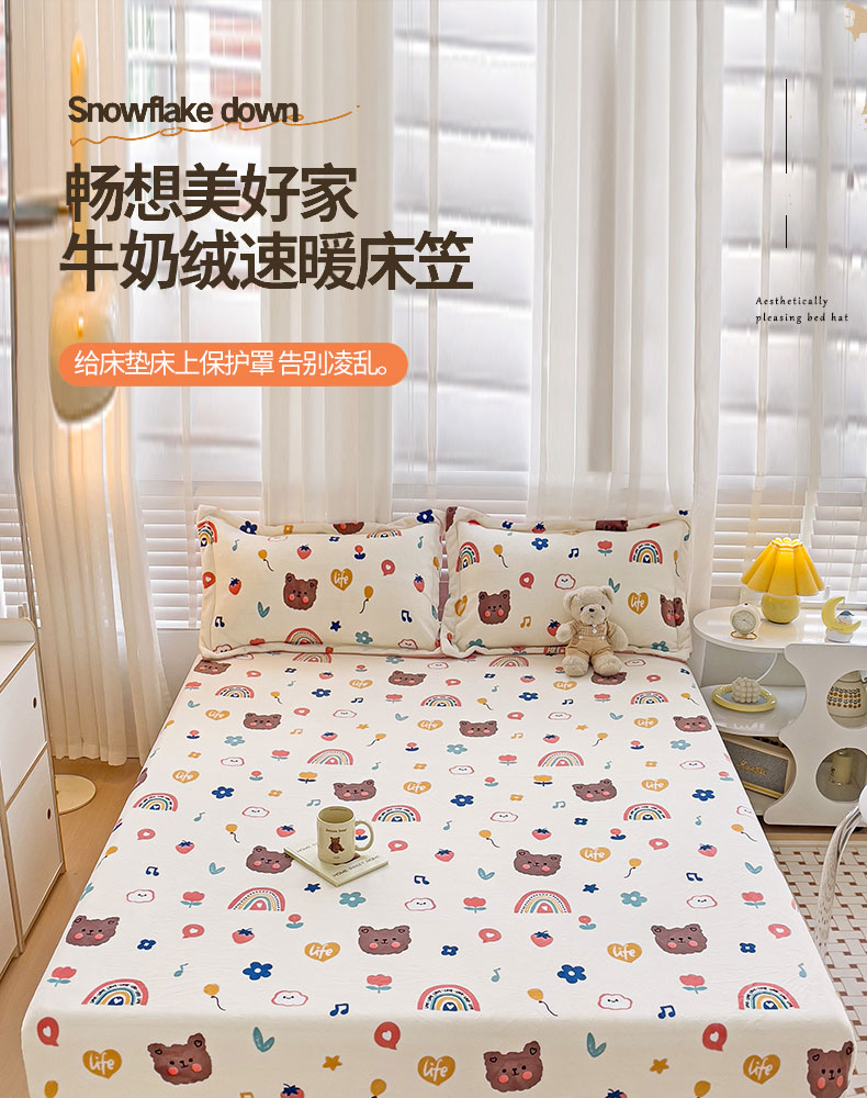 • 91家纺网 家纺一手货源 找家纺 富馨莱 2025新款牛奶绒印花床笠240克面料支持一件定制尺寸 花蝶粉