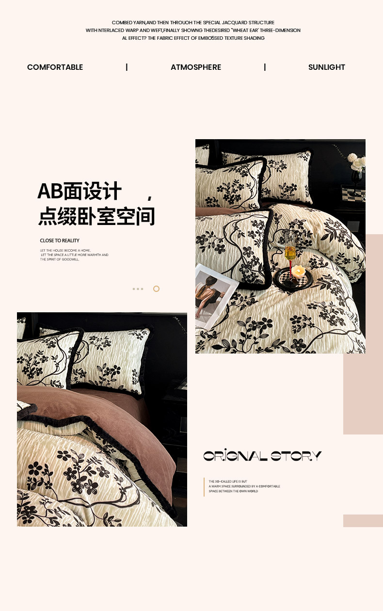(总)吾秀家居 绒城 230克美拉德数码绒四件套 牛奶绒四件套 - 暖秋系列,花韵,暗香,冬日恋歌-咖,冬日恋歌-棕,冬日森林,花意浓,境玉森林,罗曼庄园,拿铁玫瑰,深紫罗兰,丝绒玫瑰,幽香花语