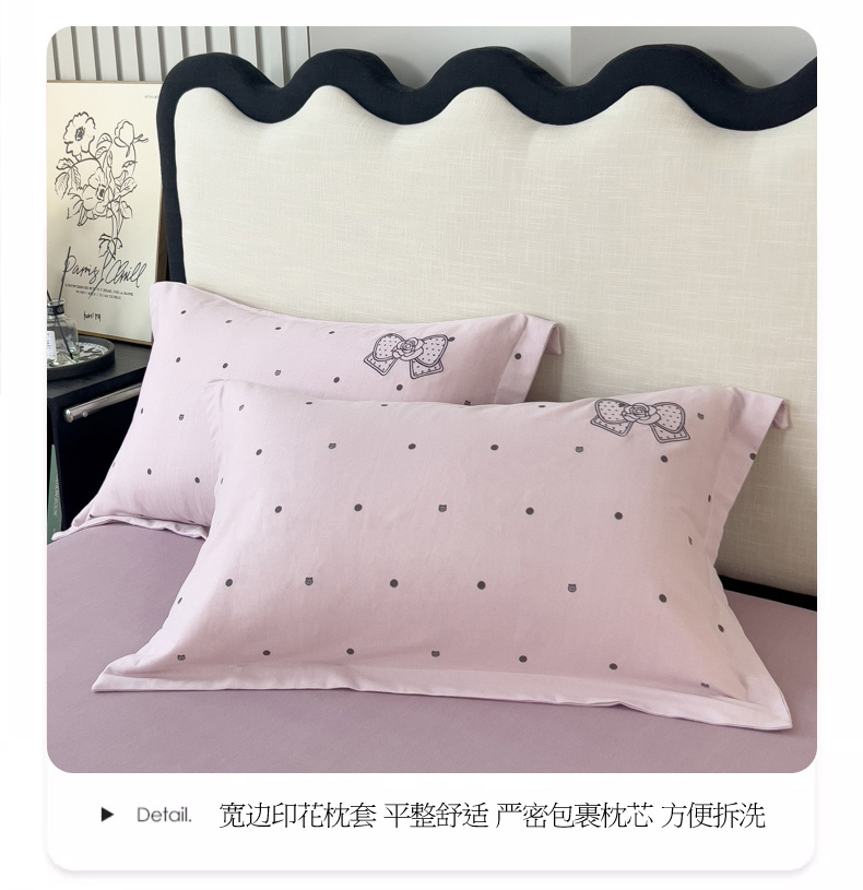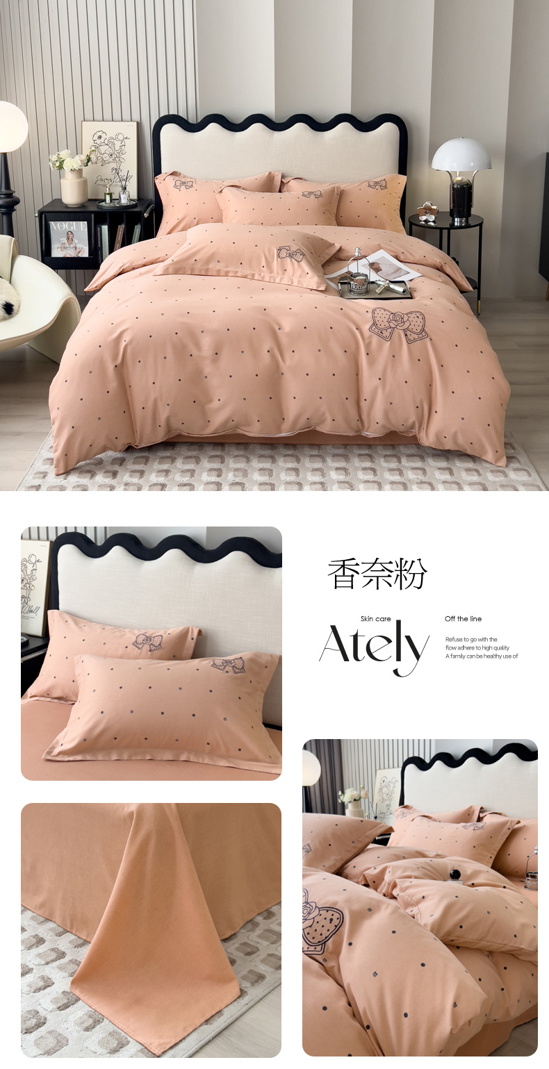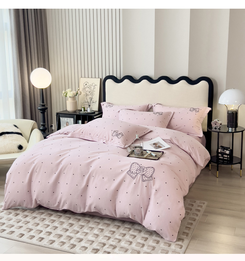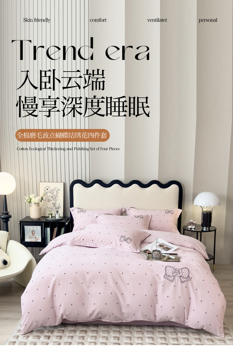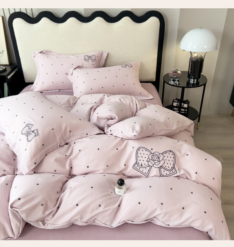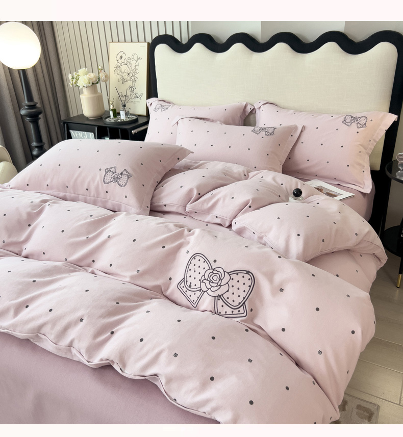当前位置: 91家纺网 > 商品网购 > 床品套件 > 四件套 > 全棉普通四件套 > 印季家纺 2025新款全棉纯棉波点蝴蝶结绣花混纺磨毛四件套 木槿紫