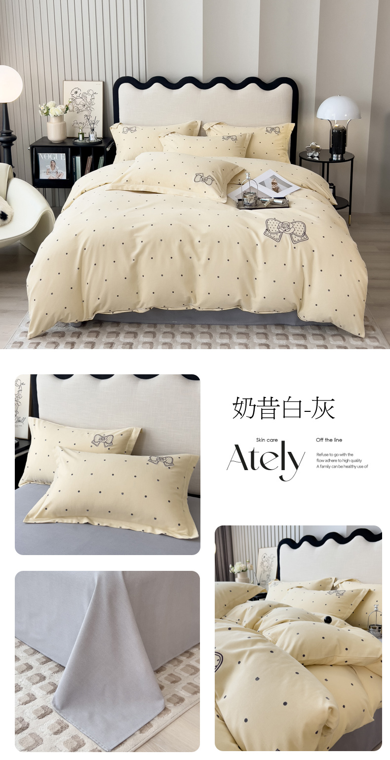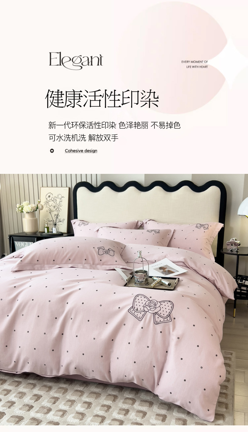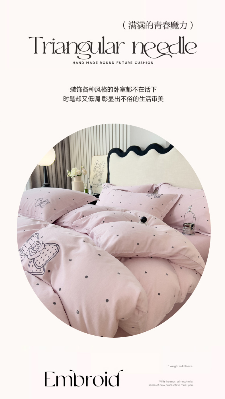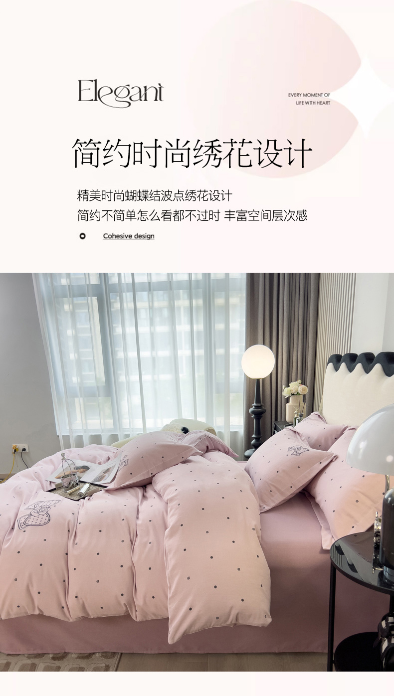 当前位置: 91家纺网 > 商品网购 > 床品套件 > 四件套 > 全棉普通四件套 > 印季家纺 2025新款全棉纯棉波点蝴蝶结绣花混纺磨毛四件套 木槿紫