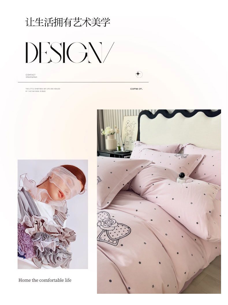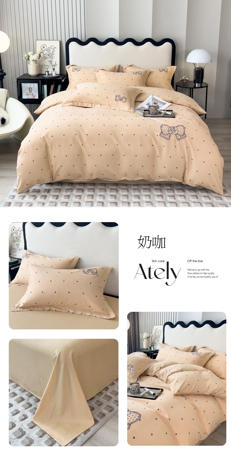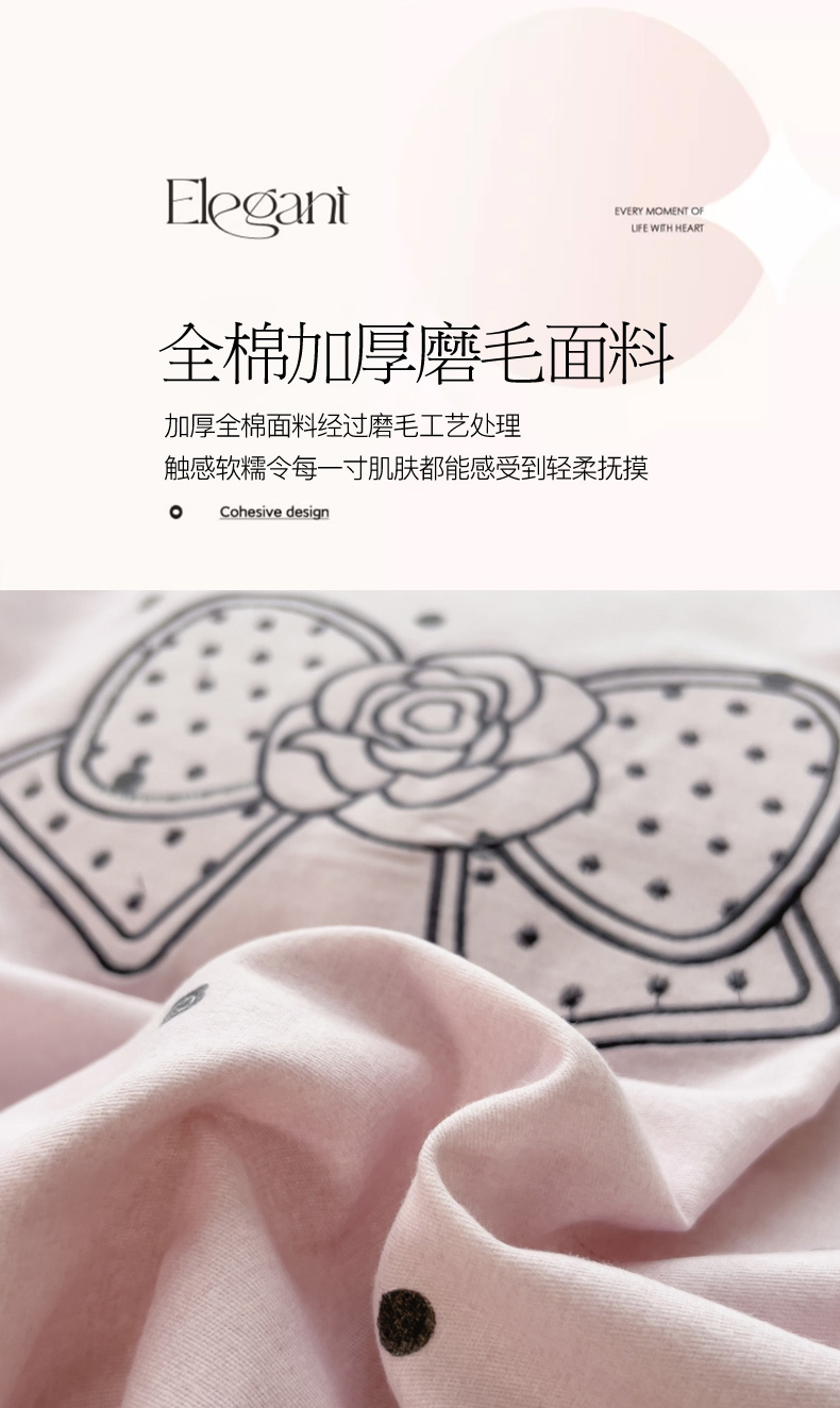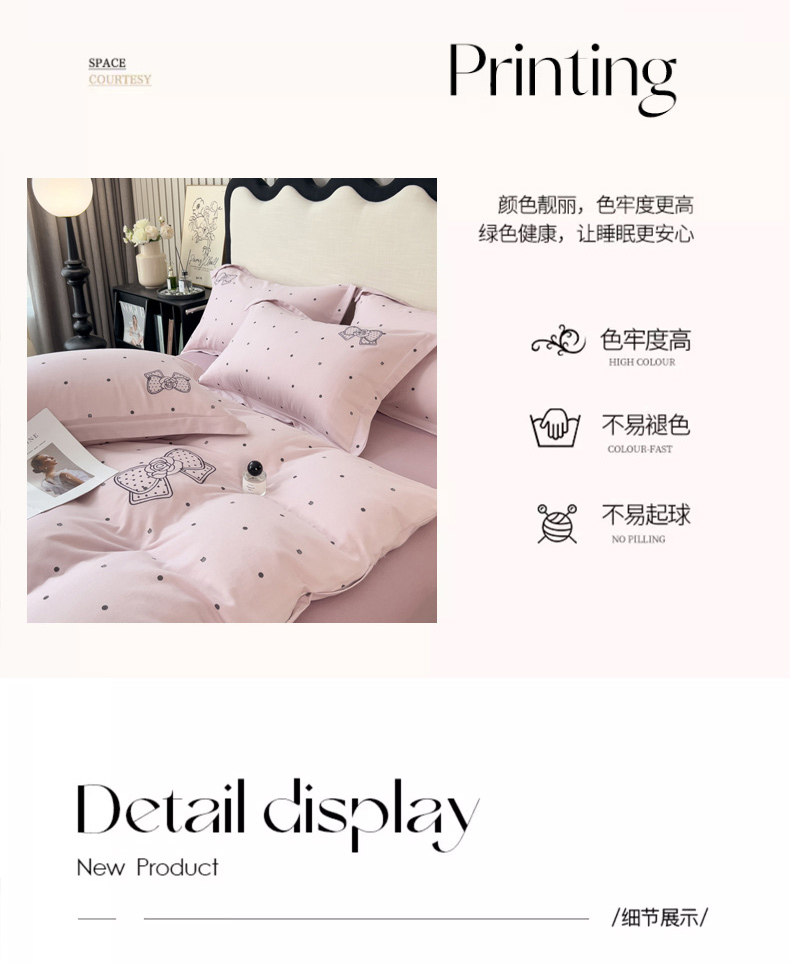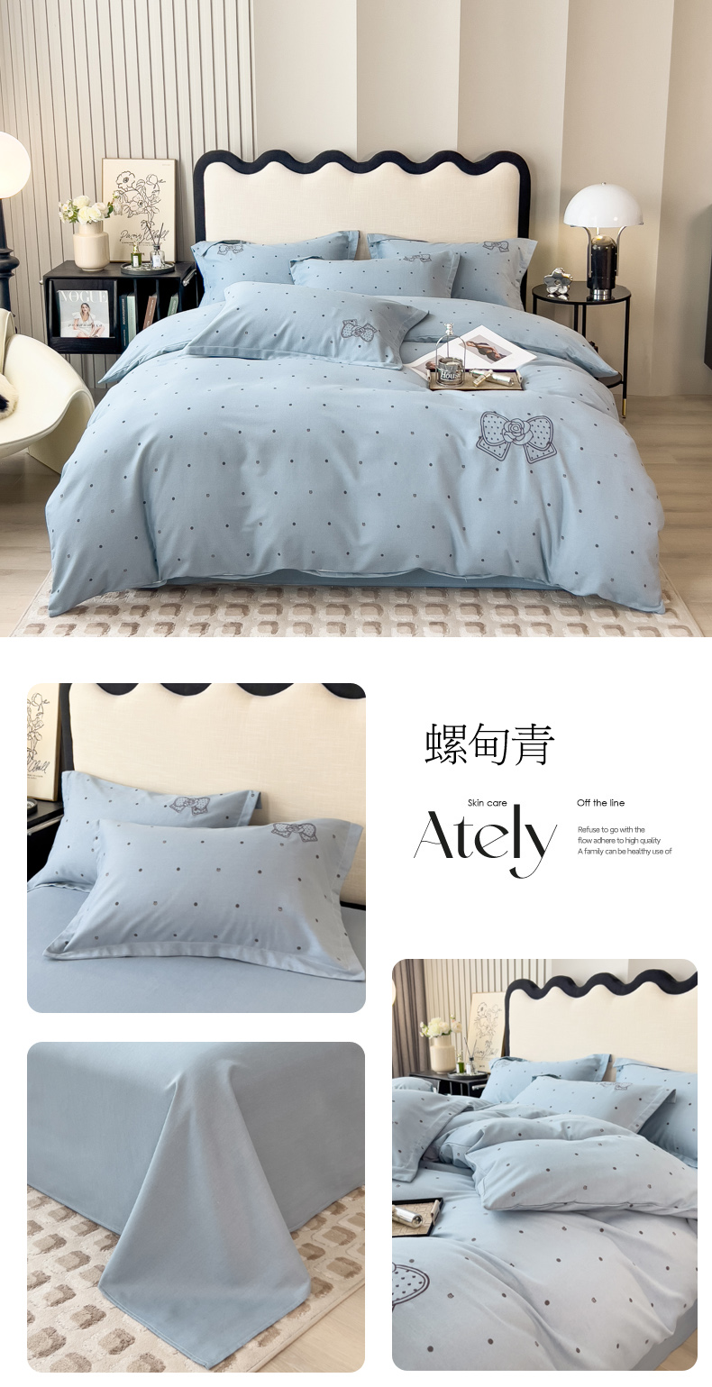 当前位置: 91家纺网 > 商品网购 > 床品套件 > 四件套 > 全棉普通四件套 > 印季家纺 2025新款全棉纯棉波点蝴蝶结绣花混纺磨毛四件套 木槿紫