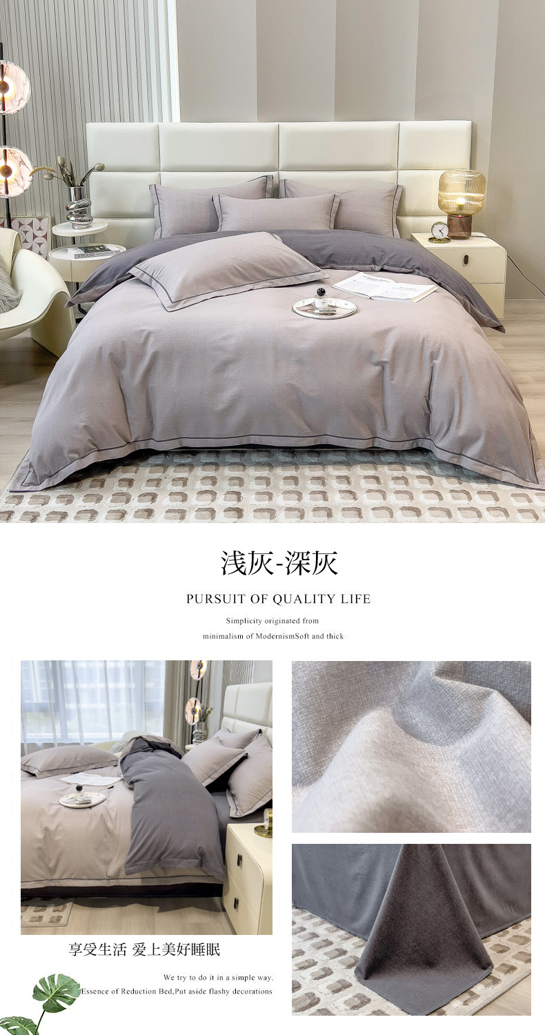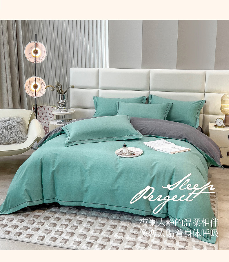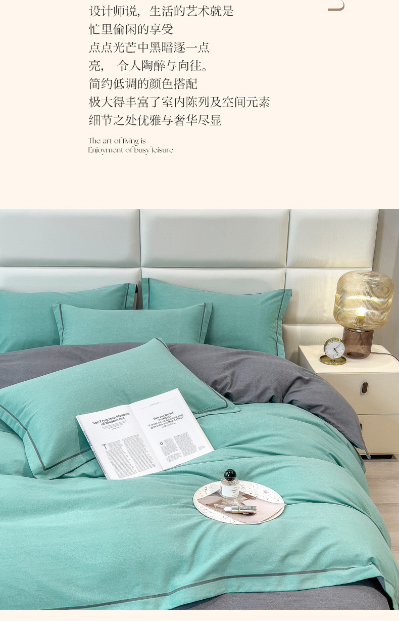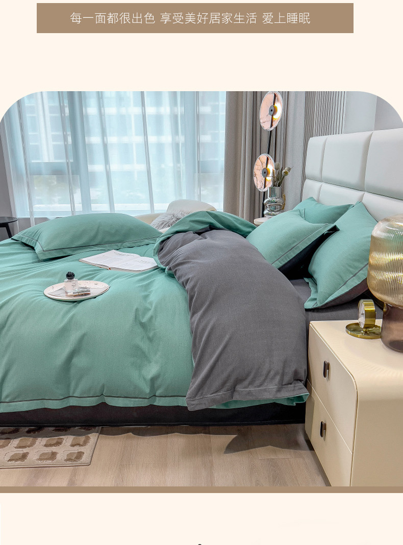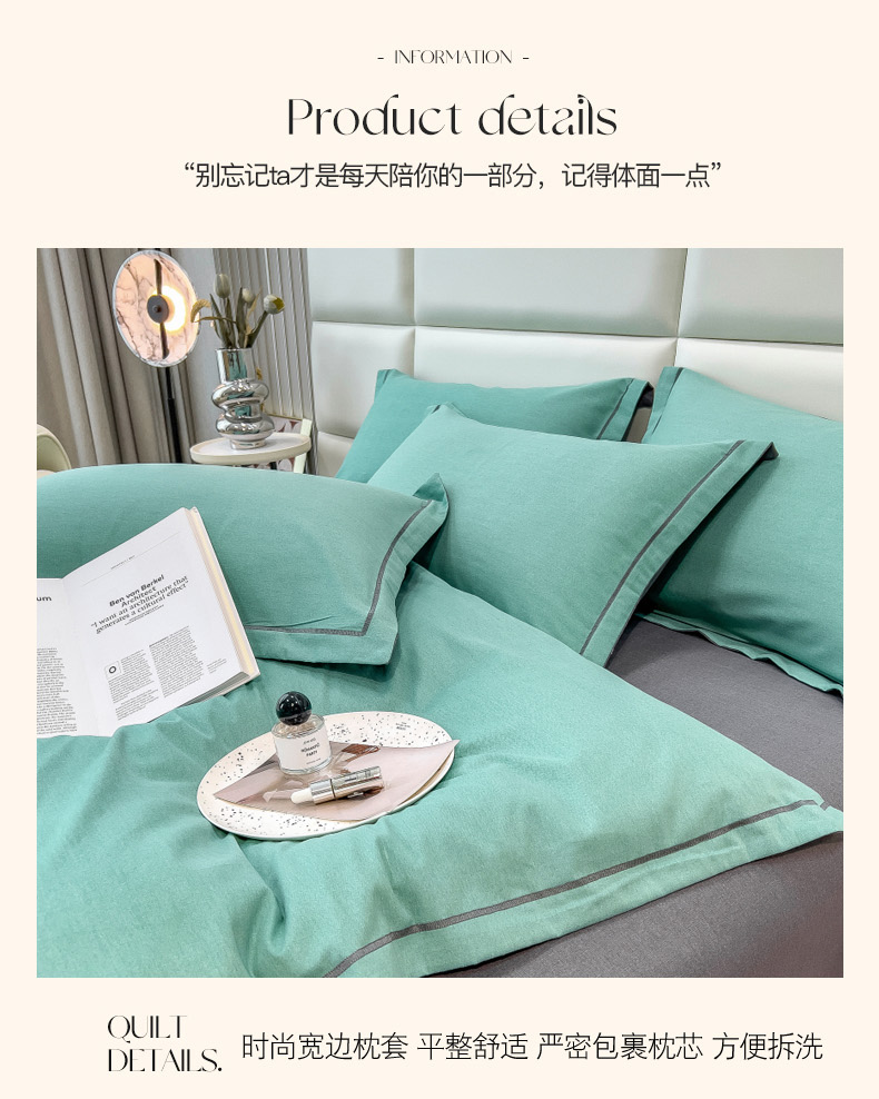当前位置: 91家纺网 > 商品网购 > 床品套件 > 四件套 > 全棉普通四件套 > 印季家纺 2025新款纯色磨毛混纺一字绣四件套 水绿-深灰