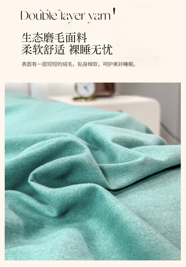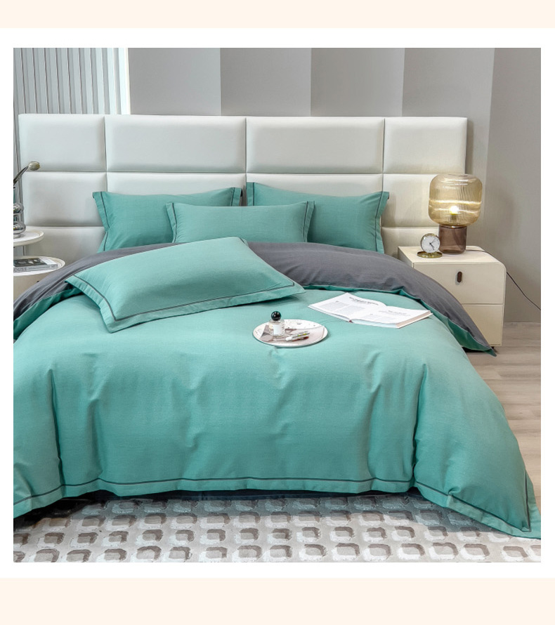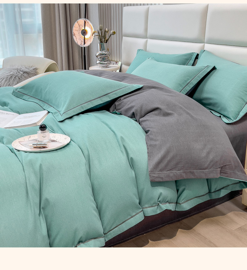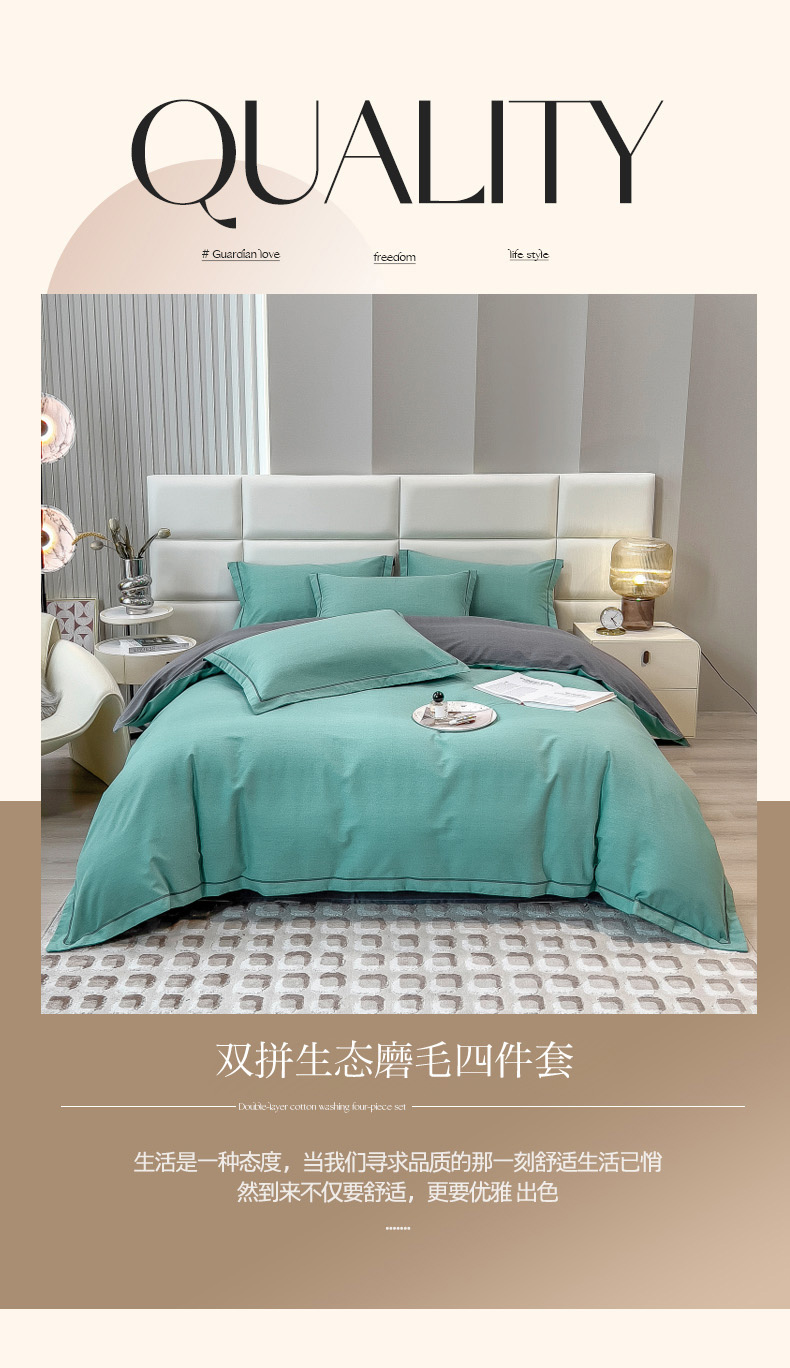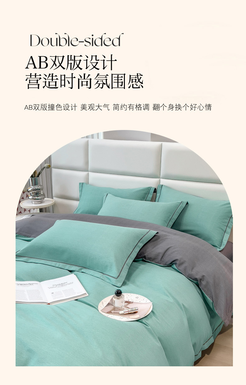 当前位置: 91家纺网 > 商品网购 > 床品套件 > 四件套 > 全棉普通四件套 > 印季家纺 2025新款纯色磨毛混纺一字绣四件套 水绿-深灰