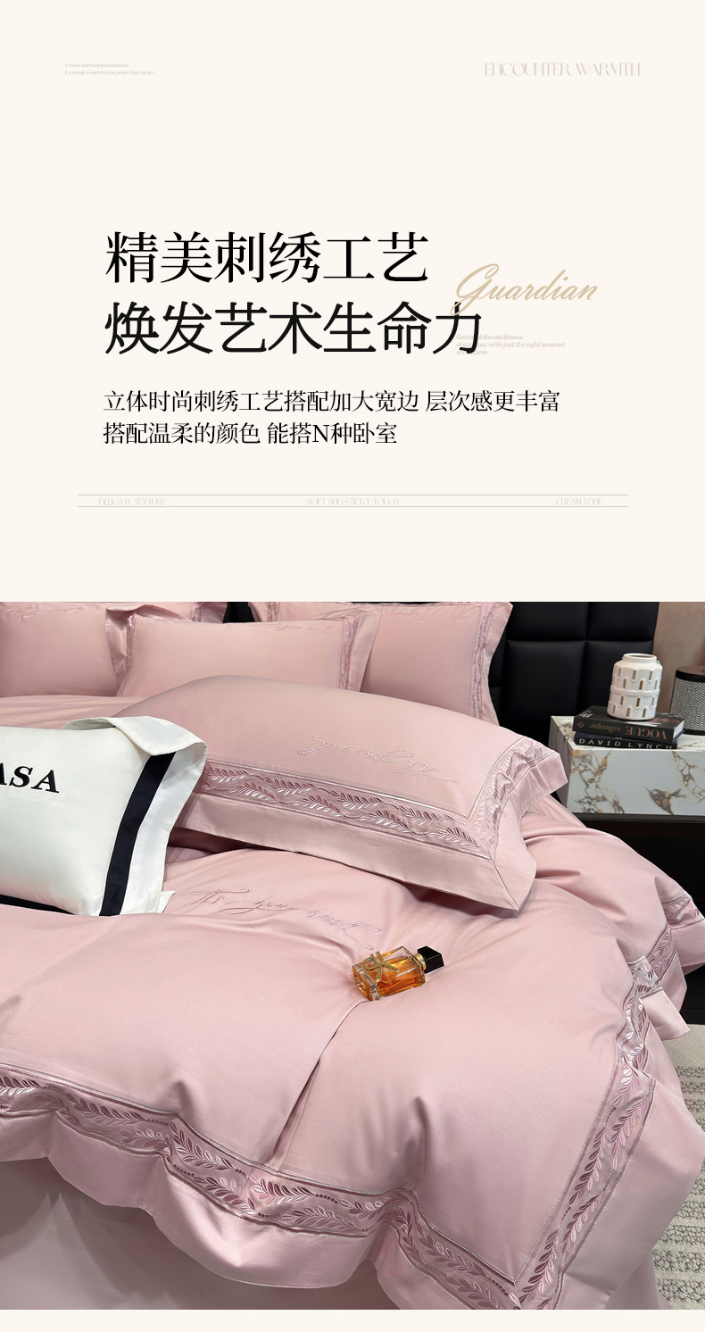 (总)星蕴家纺 2024新款A类新疆全棉刺绣四件套,高级灰,奶昔白,千禧粉,浅香槟