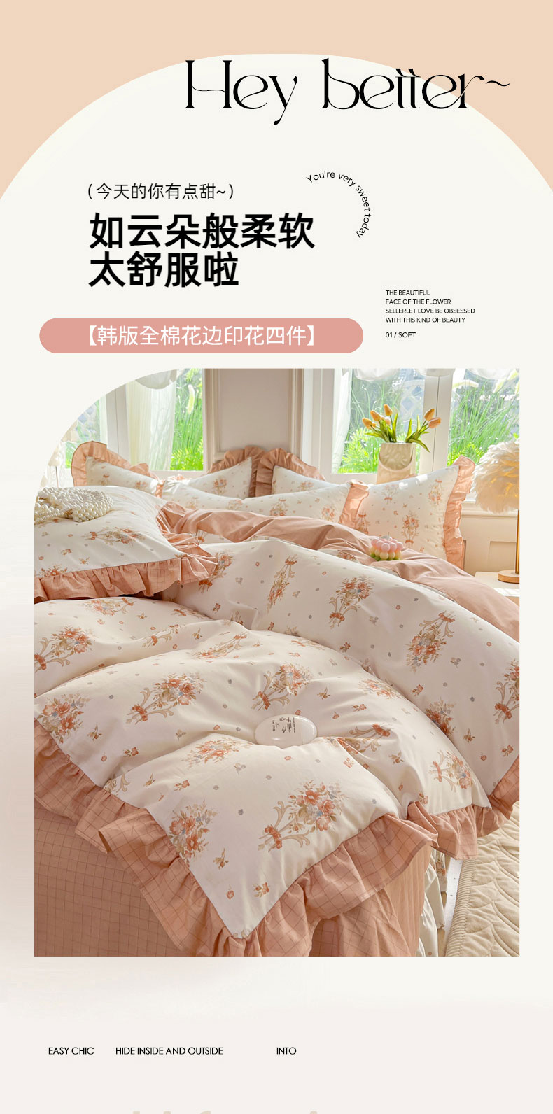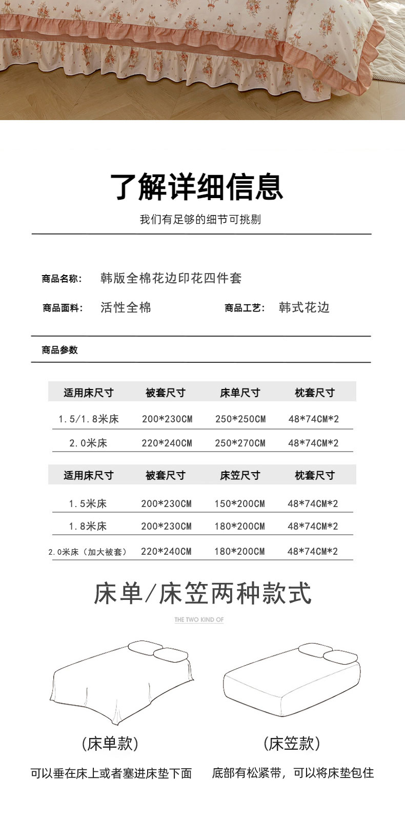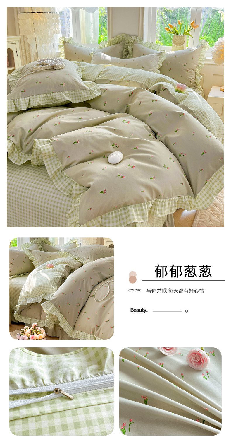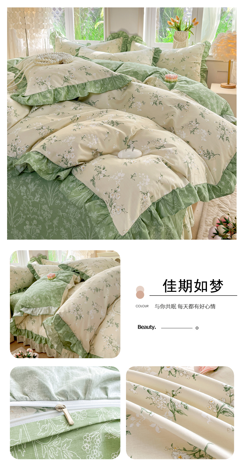 当前位置: 91家纺网 > 商品网购 > 床品套件 > 四件套 > 全棉普通四件套 > 兴美佳家纺 2026新款全棉印花韩版花边床裙款四件套 繁花似锦