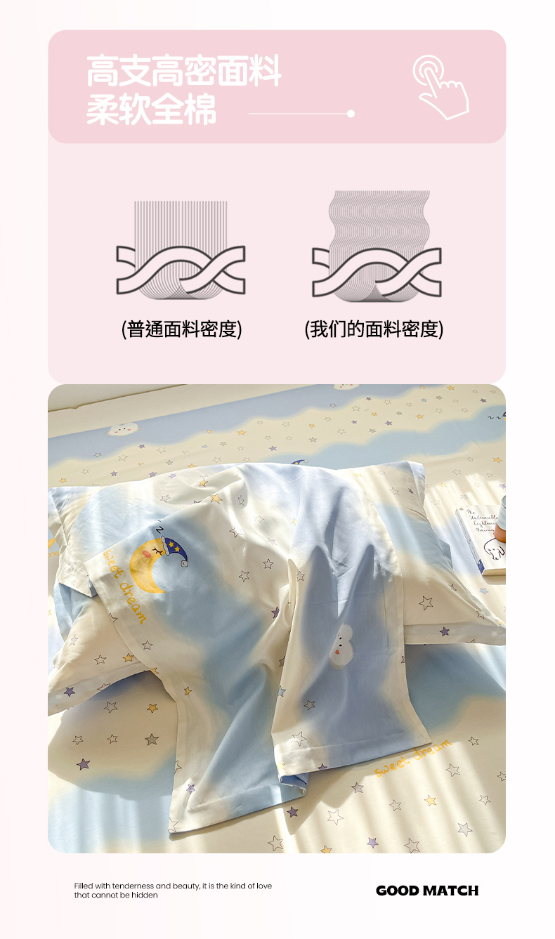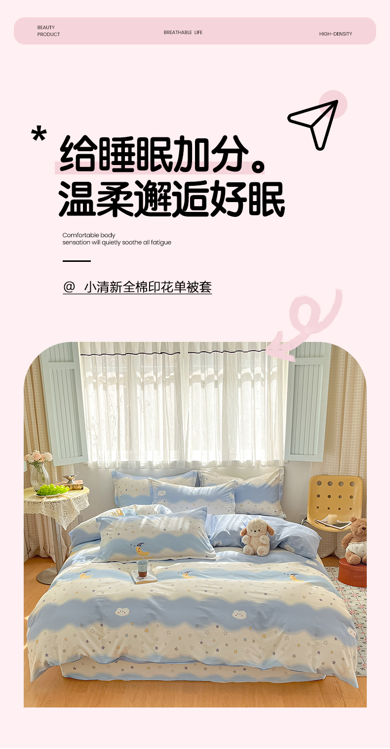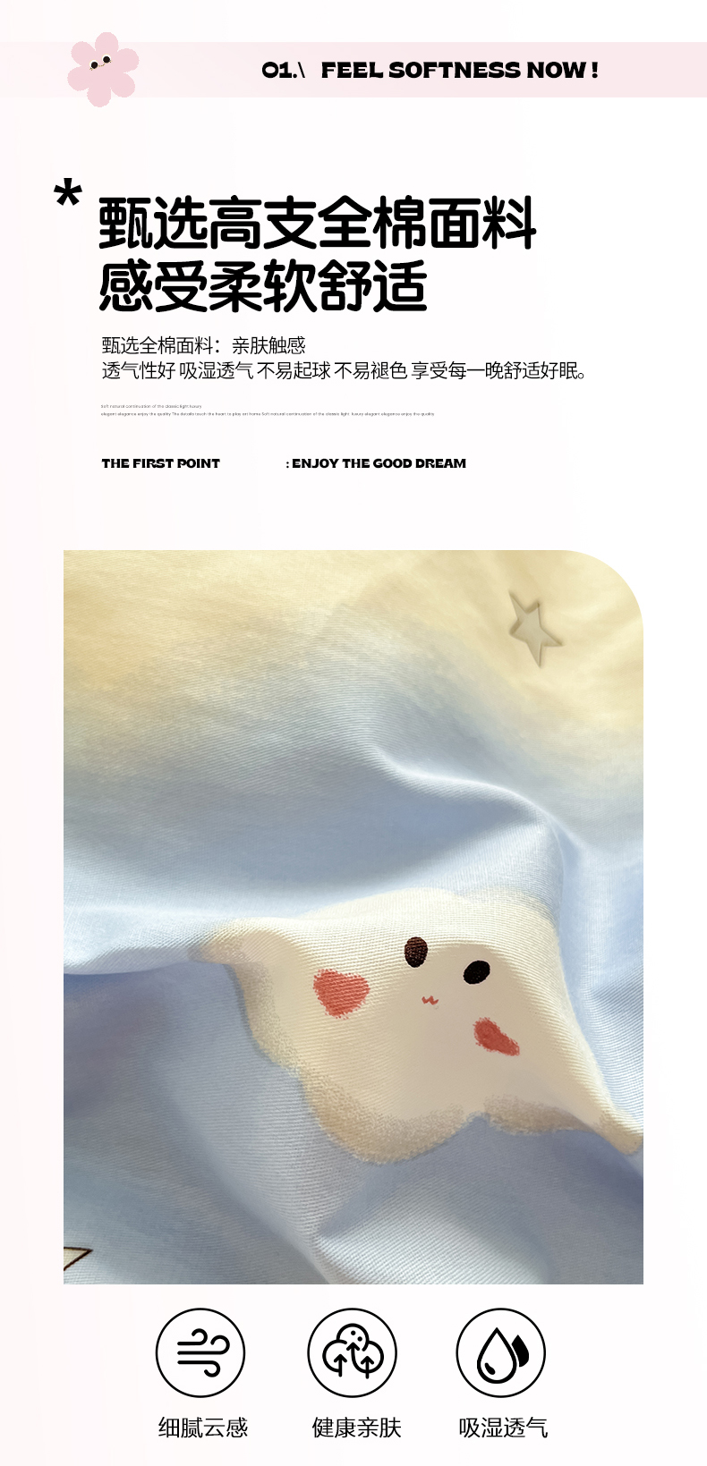 商品名称:花梦欣 2026新款全棉印花系列简约卡通款单被套 星辰入梦
