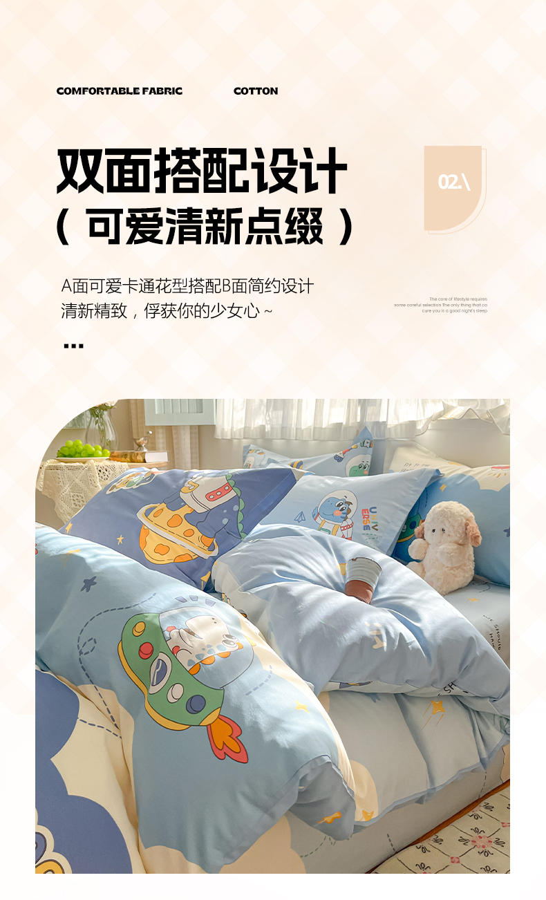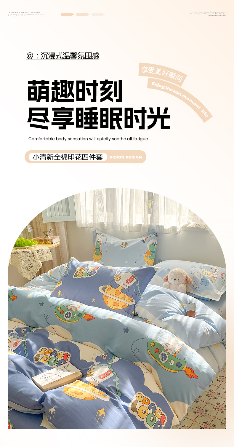 当前位置: 91家纺网 > 商品网购 > 床品套件 > 四件套 > 全棉普通四件套 > 花梦欣 2026新款全棉印花系列简约卡通款四件套 星际漫游记