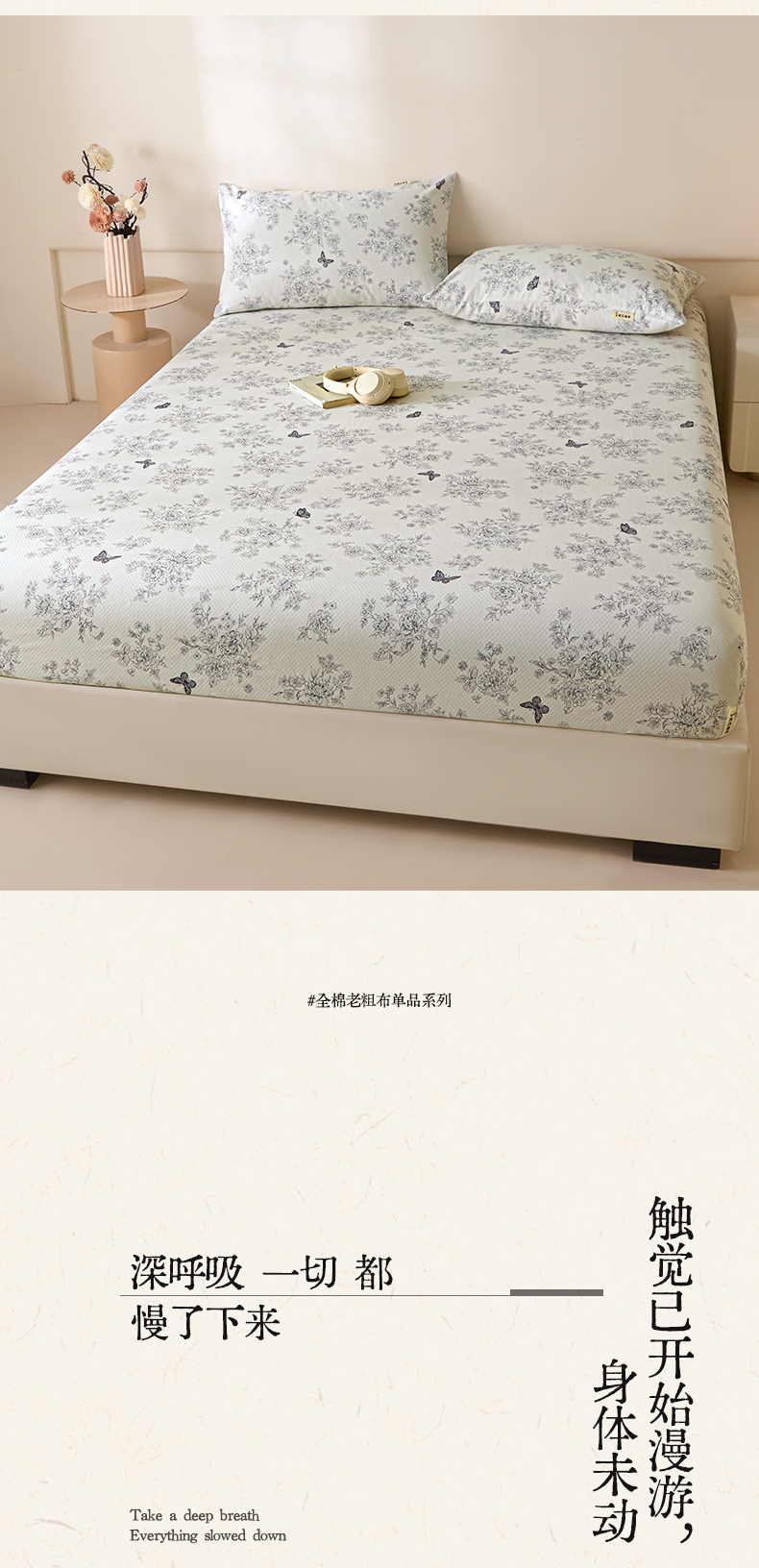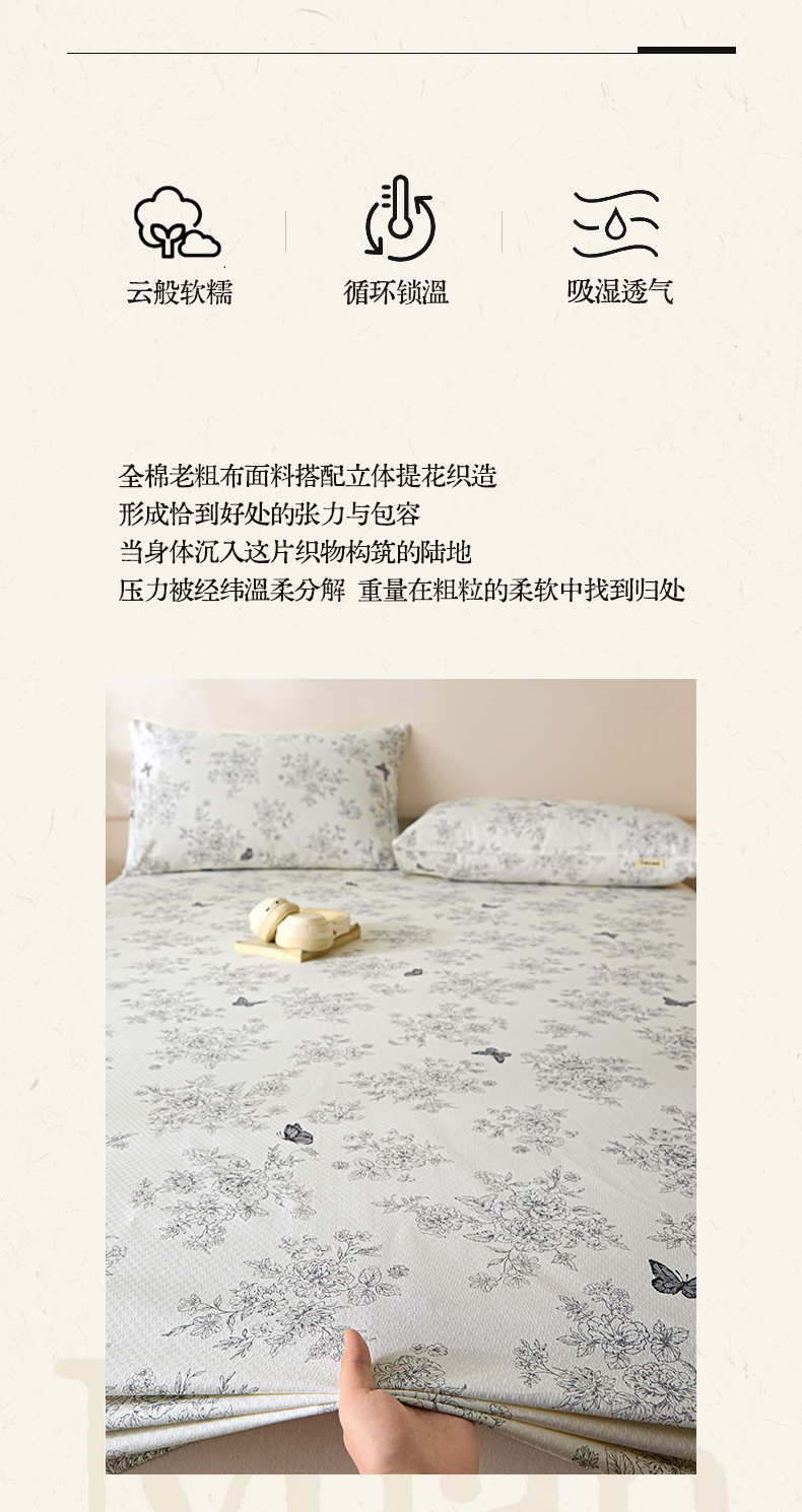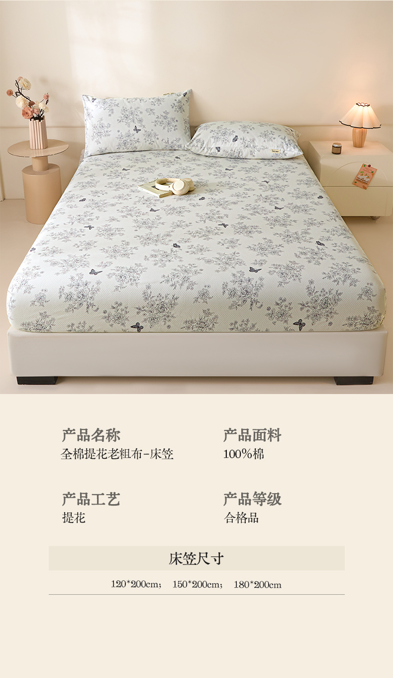 涵宸家纺 2026新款全棉提花老粗布-单床笠 床笠-墨蝶