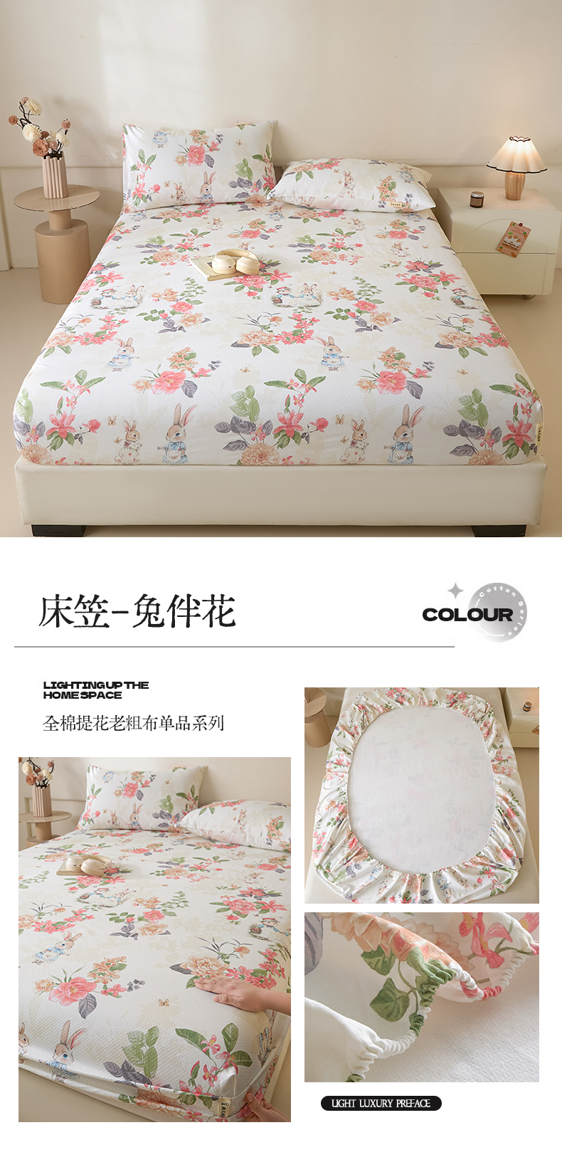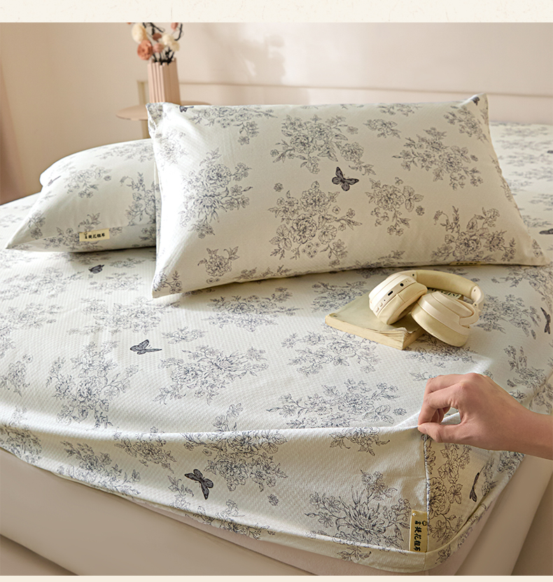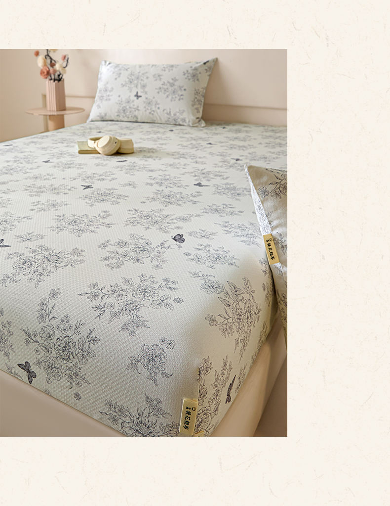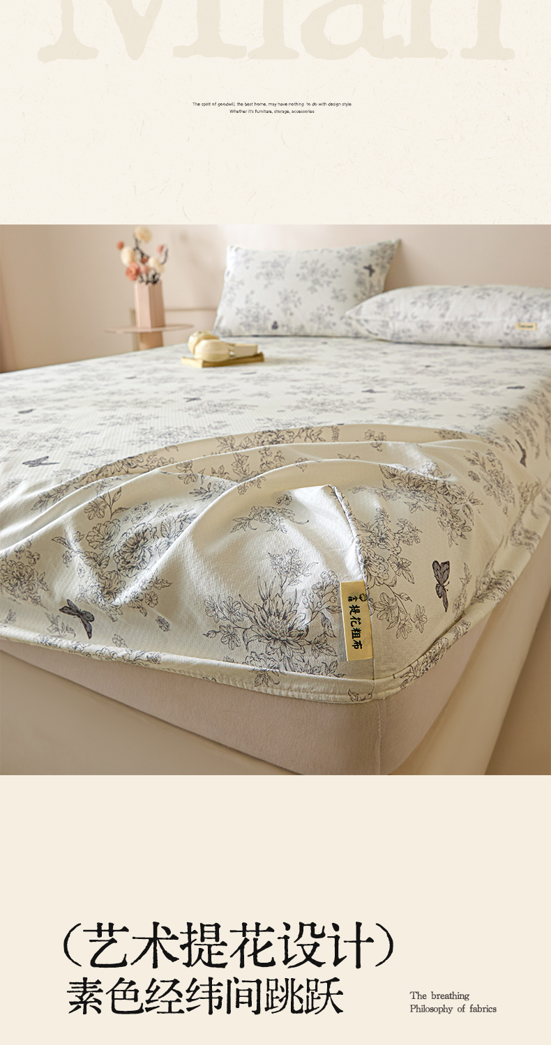 涵宸家纺 2026新款全棉提花老粗布-单床笠 床笠-墨蝶