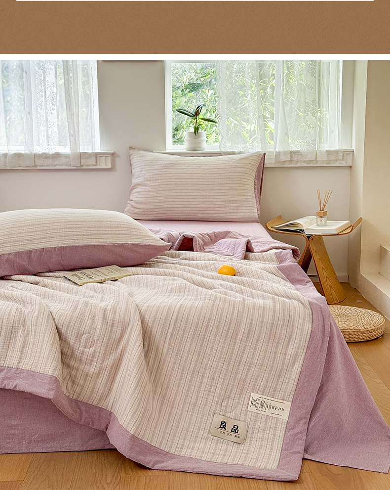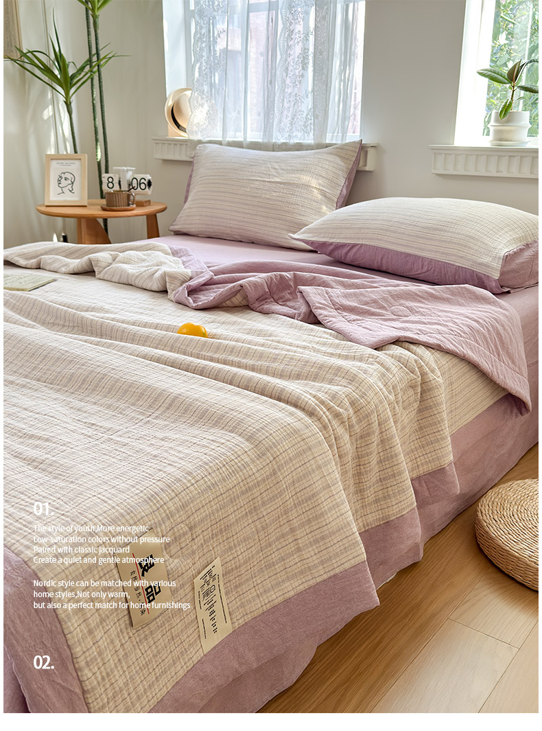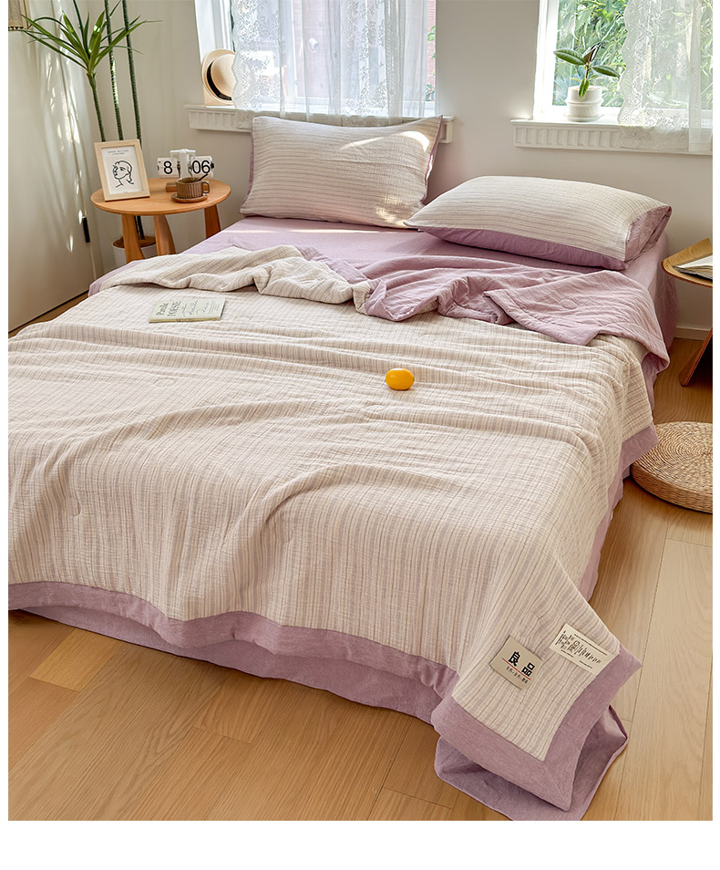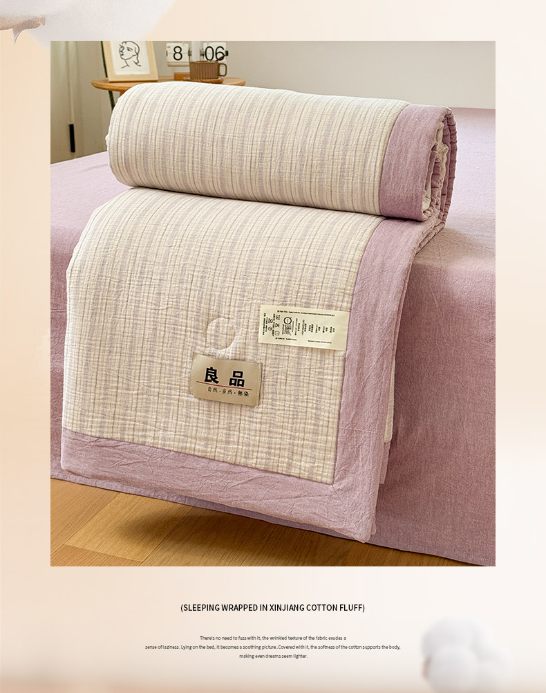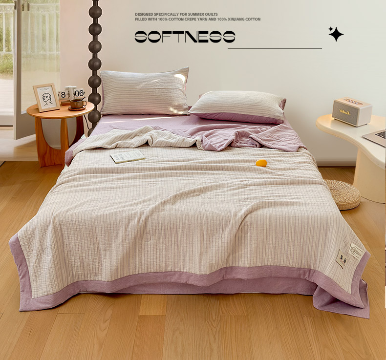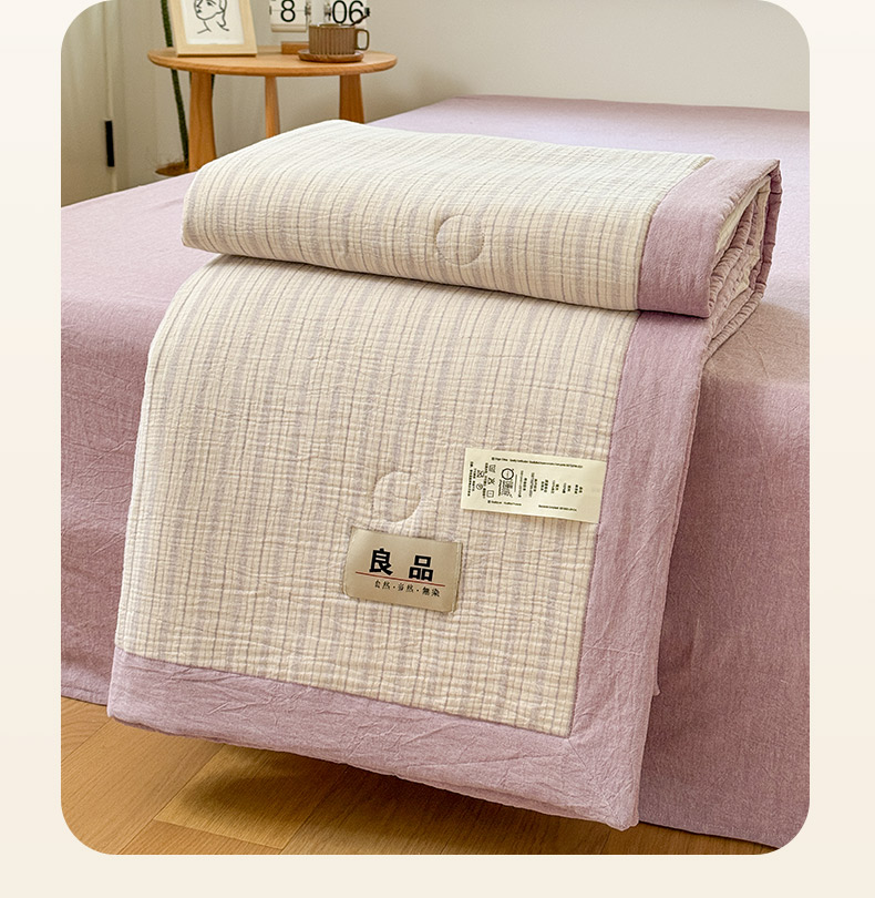 • 91家纺网 家纺一手货源 找家纺 雯雨家纺 2026新款A类里外全棉皱皱纱新疆棉花夏被空调被 米洛-浅紫