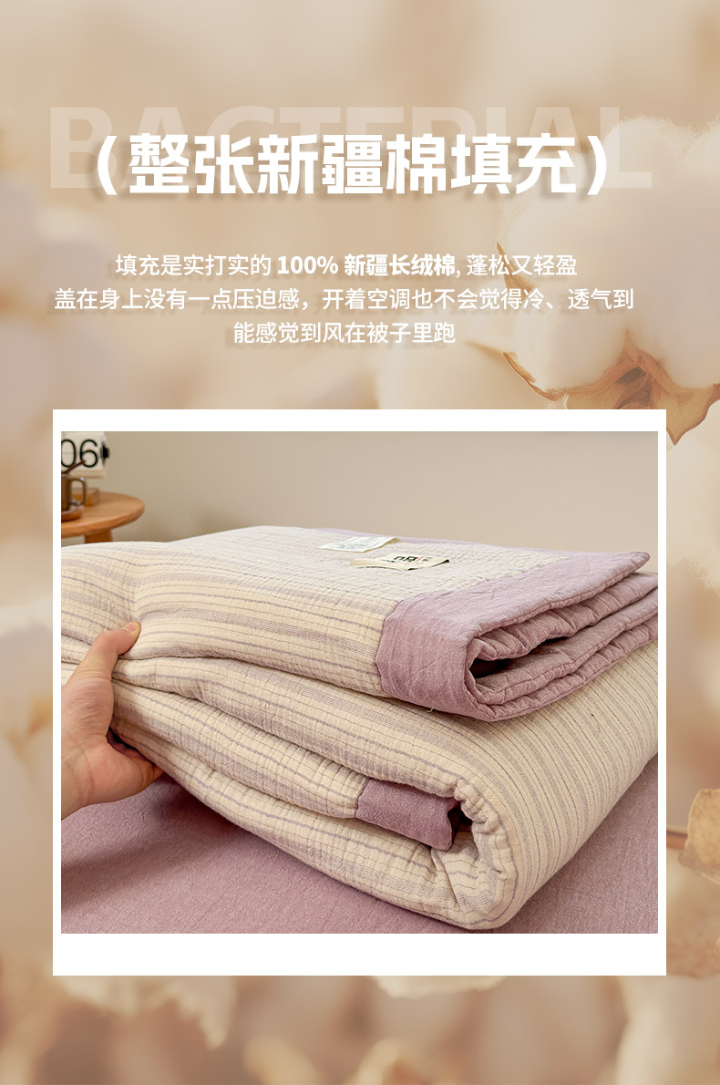 雯雨家纺 2026新款A类里外全棉皱皱纱新疆棉花夏被空调被 米洛-浅紫