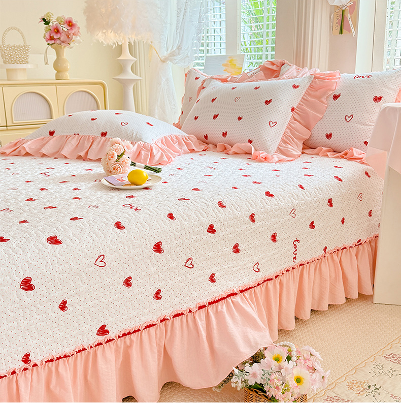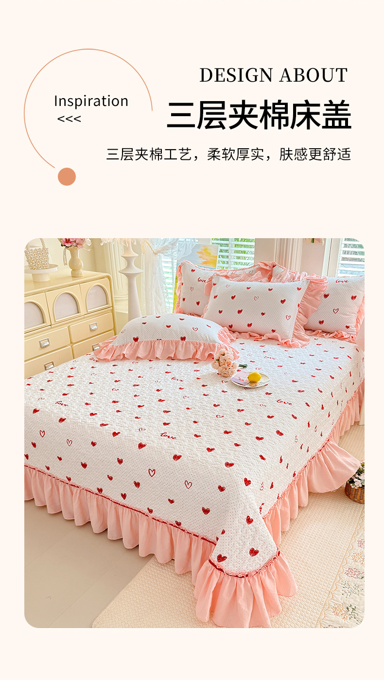 当前位置: 91家纺网 > 商品网购 > 床品套件 > 四件套 > 水洗棉四件套 > 贝凯瑞 2026新款双层纱水洗棉法式复古花边床盖单件三件四件套-甜心 甜心love