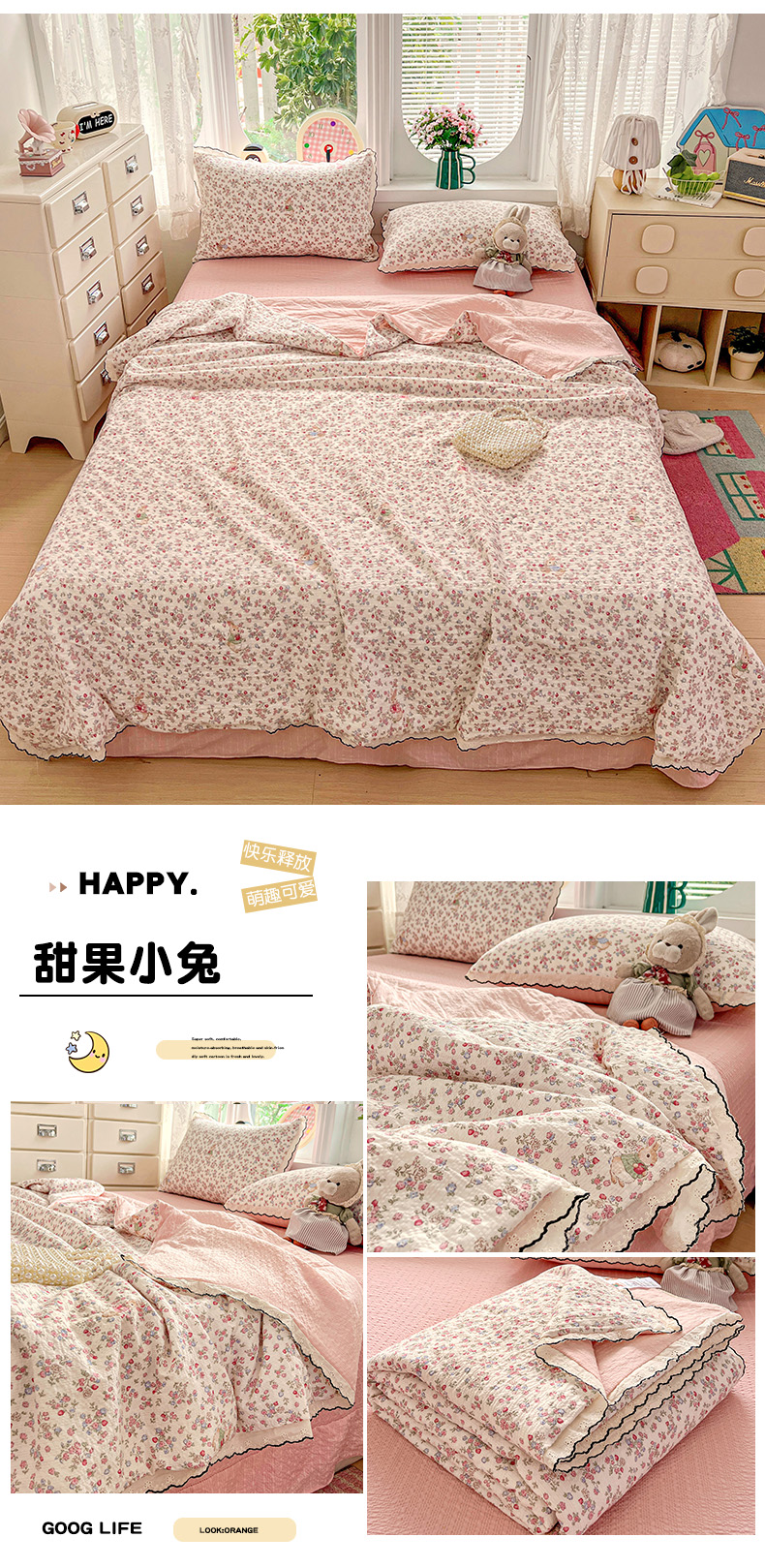 (总)金梦拉家纺 2026春夏新款云感双层纱皱皱纱系列四件套,爱心小兔,芭宠假日蓝,白桃乌龙,宝莉粉,波点熊,春日铃兰,丛林兔,花畔里,凯特蓝,可爱熊熊,蓝格蛋糕熊,萌萌小象,蜜桃草莓,茉莉清风,铅笔熊,清浅,森澜,碎花萌宠,夏日木槿,小福马,小马咖,栀夏,紫色风信,紫韵花茶