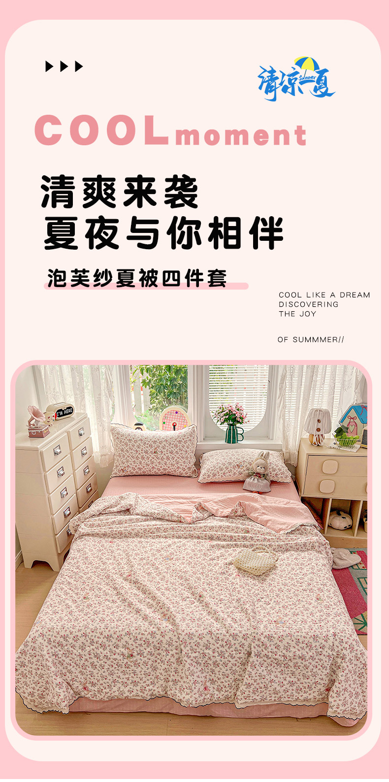 (总)金梦拉家纺 2026春夏新款云感双层纱皱皱纱系列四件套,爱心小兔,芭宠假日蓝,白桃乌龙,宝莉粉,波点熊,春日铃兰,丛林兔,花畔里,凯特蓝,可爱熊熊,蓝格蛋糕熊,萌萌小象,蜜桃草莓,茉莉清风,铅笔熊,清浅,森澜,碎花萌宠,夏日木槿,小福马,小马咖,栀夏,紫色风信,紫韵花茶