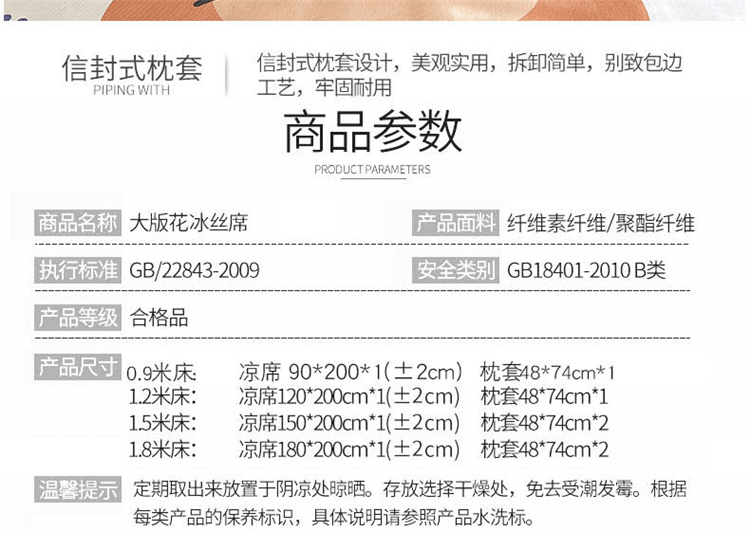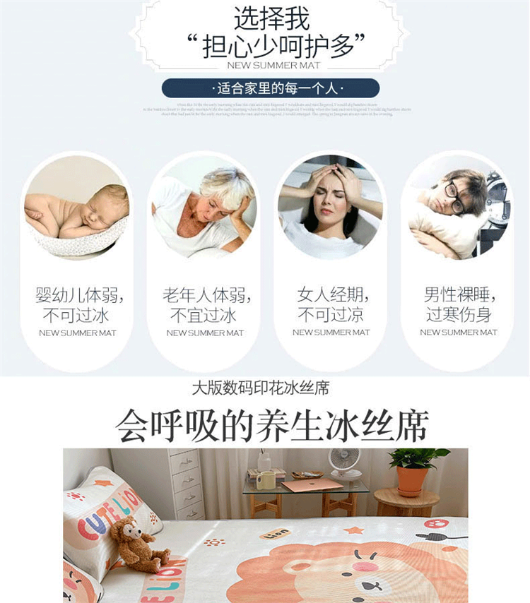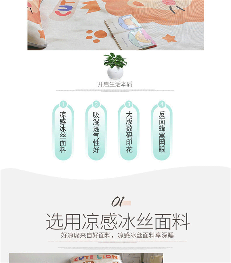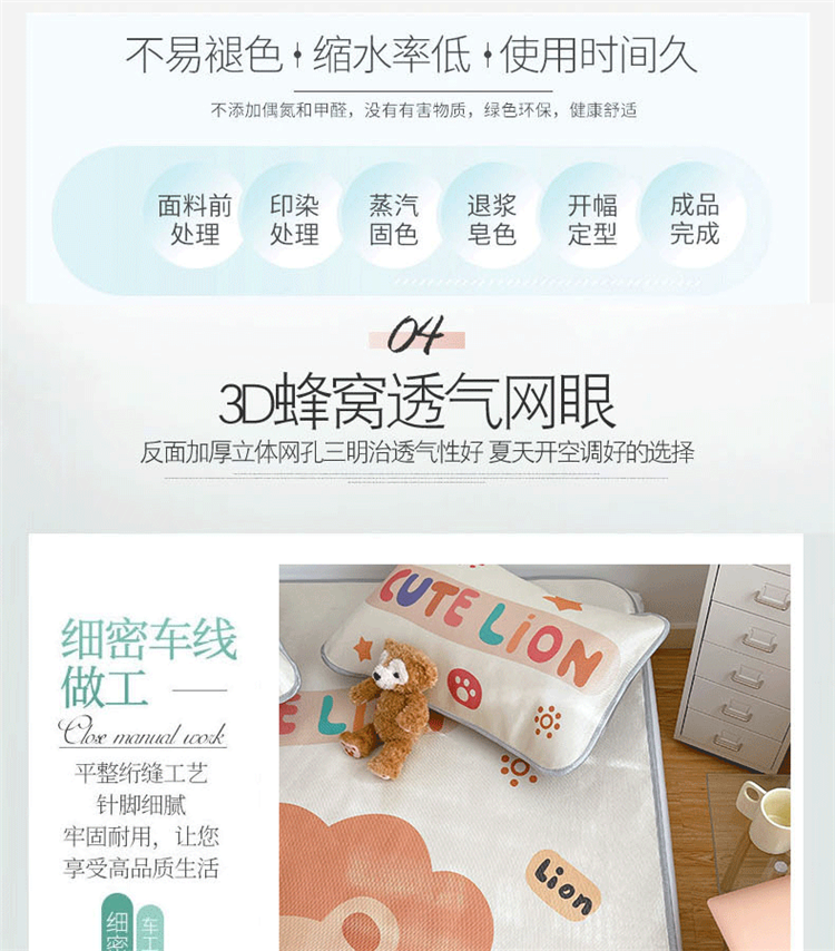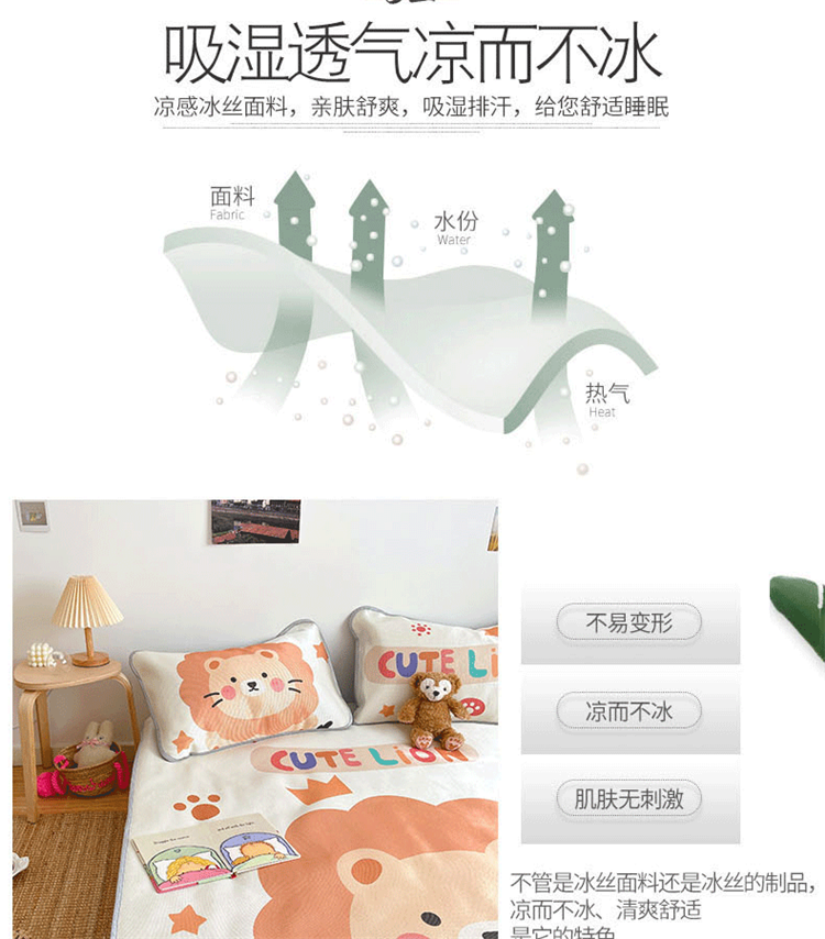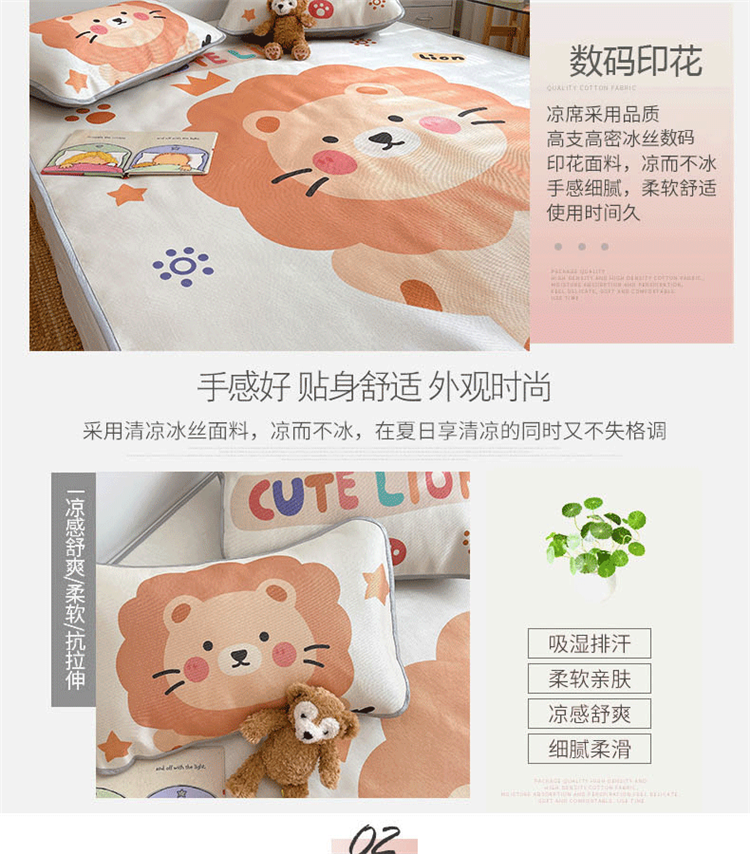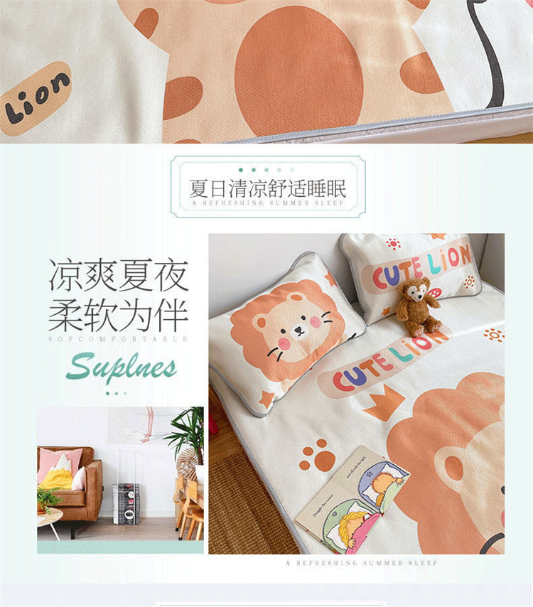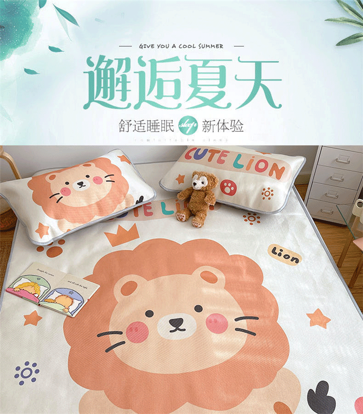 商品名称:川悦生活 直播供货2021新款小清新大版冰丝席卡通凉席三件套小狮王