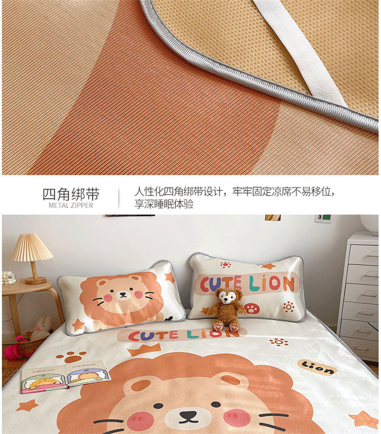 川悦生活 直播供货2021新款小清新大版冰丝席卡通凉席三件套小狮王