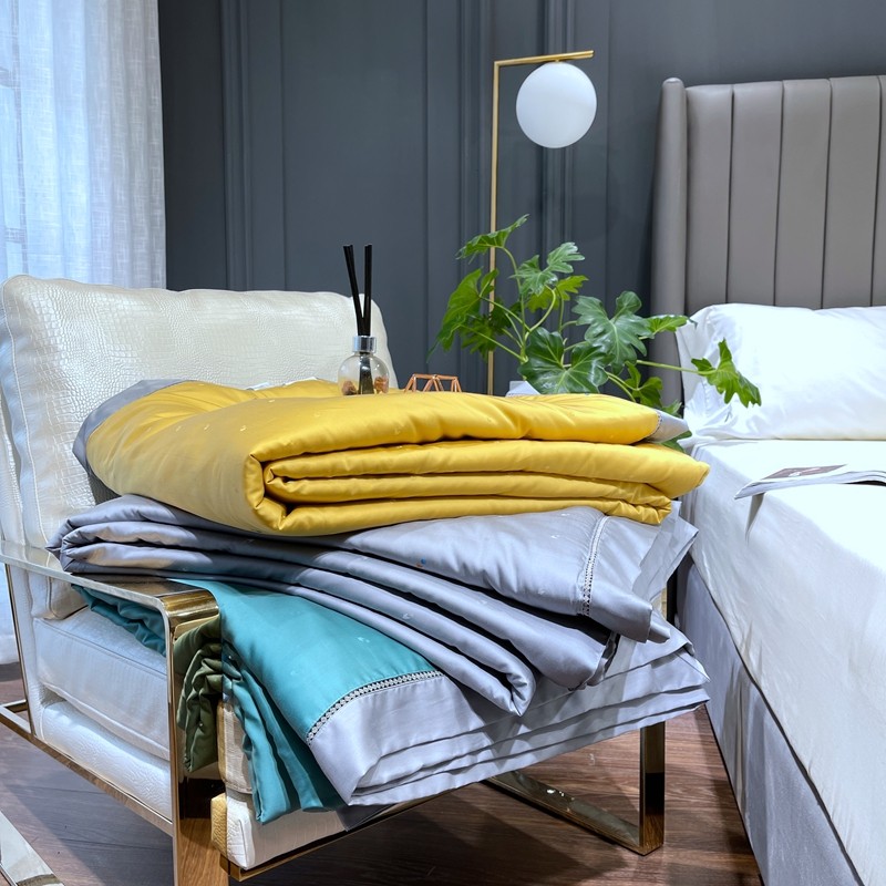 (总)榻尚家居 2025新款天丝床盖夏被夏凉被空调被四件套-佩利兹,佩利兹床盖夏被四件套-粉色,佩利兹床盖夏被四件套-香槟