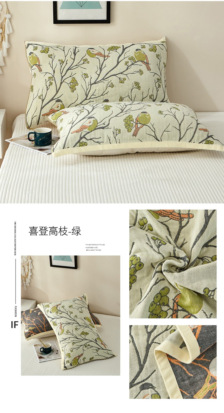 • 91家纺网 家纺一手货源 找家纺 朴尔家纺新款素雅系列四层纱布枕巾52*78cm 喜登高枝-绿