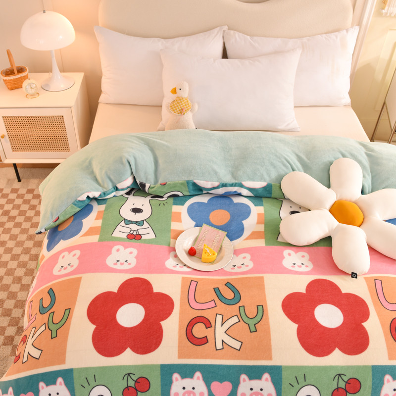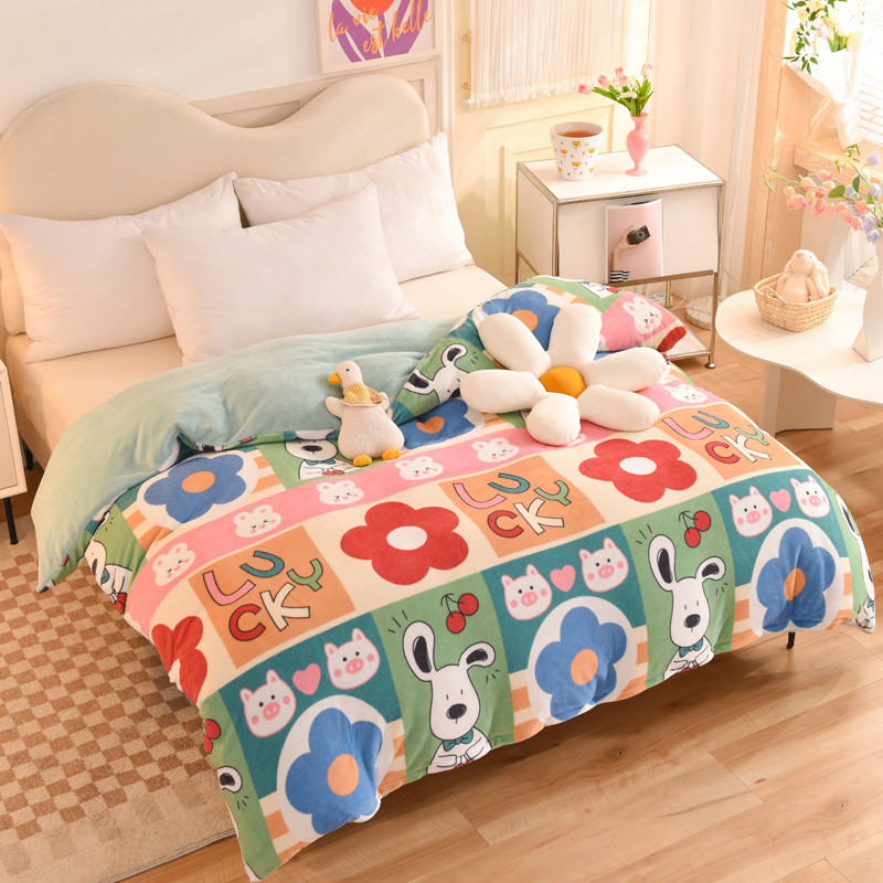 甜之梦家纺2025新款印花牛奶绒单品被套可定制任何尺寸 萌宠跳跳