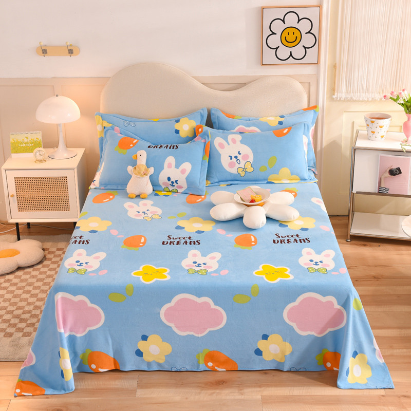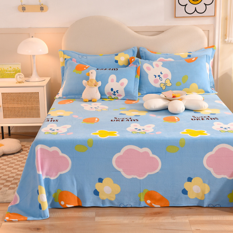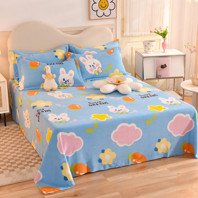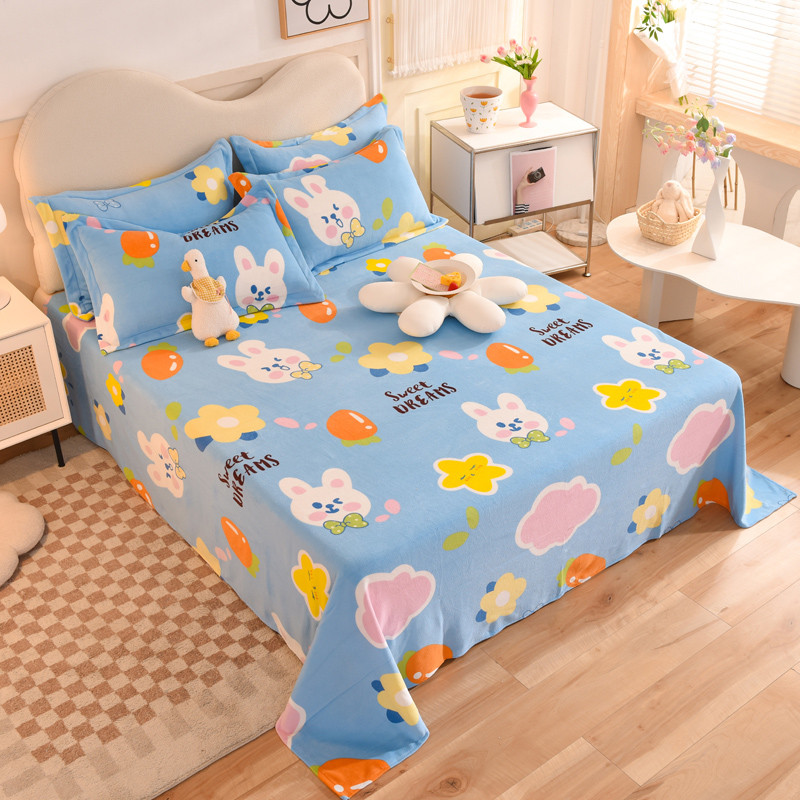 甜之梦家纺 2025新款印花牛奶绒单品床单可定制任何尺寸 爱心萌兔