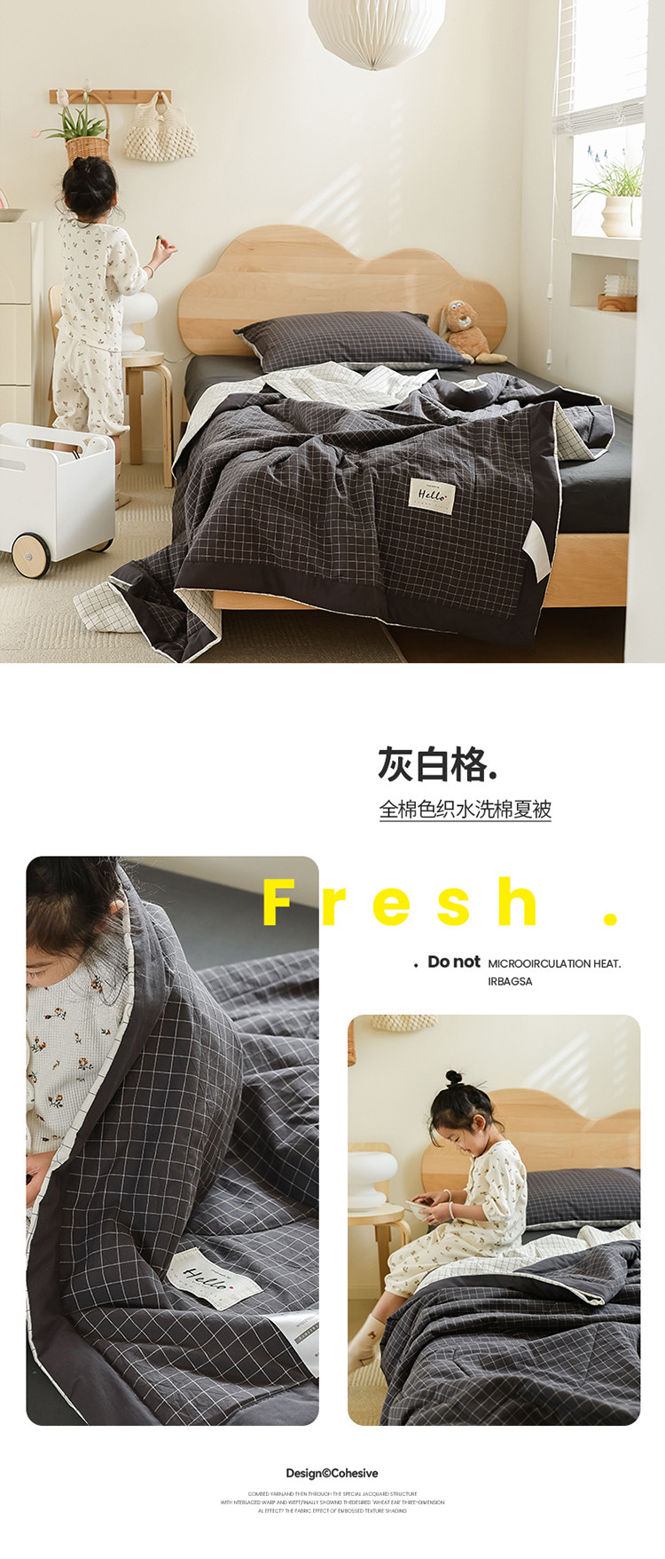 商品名称:寐眠 2023新款全棉色织水洗棉儿童夏被 灰白格