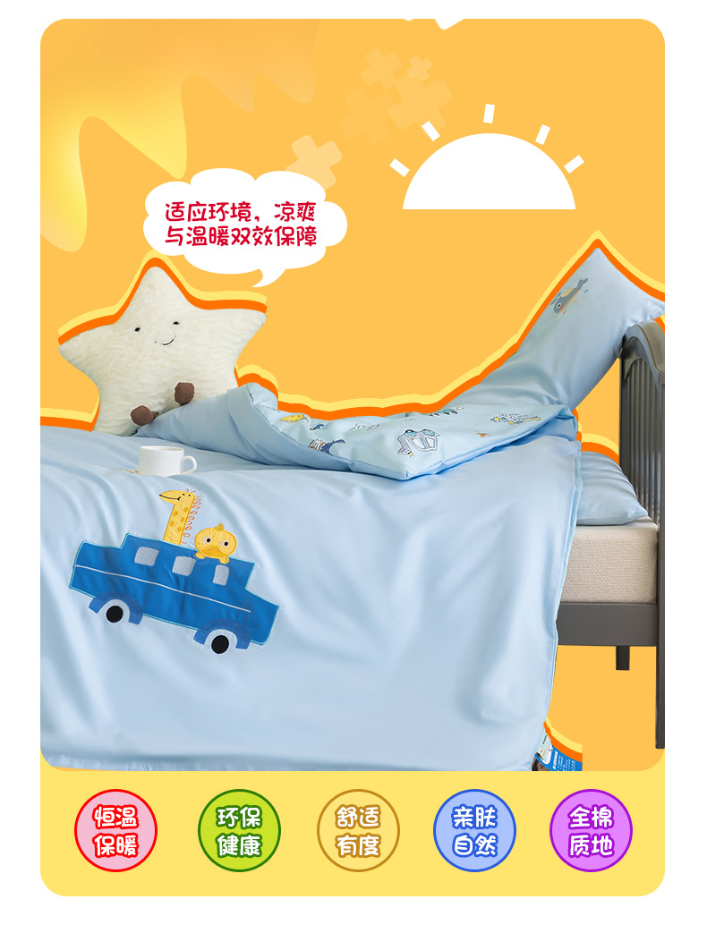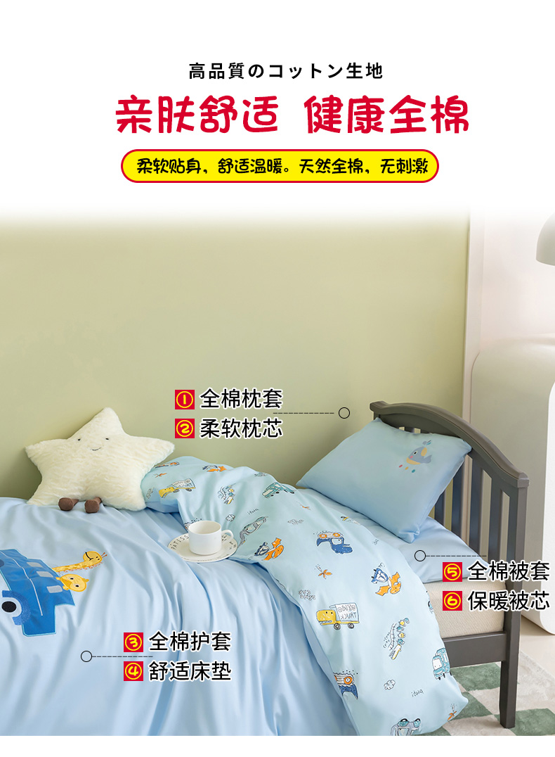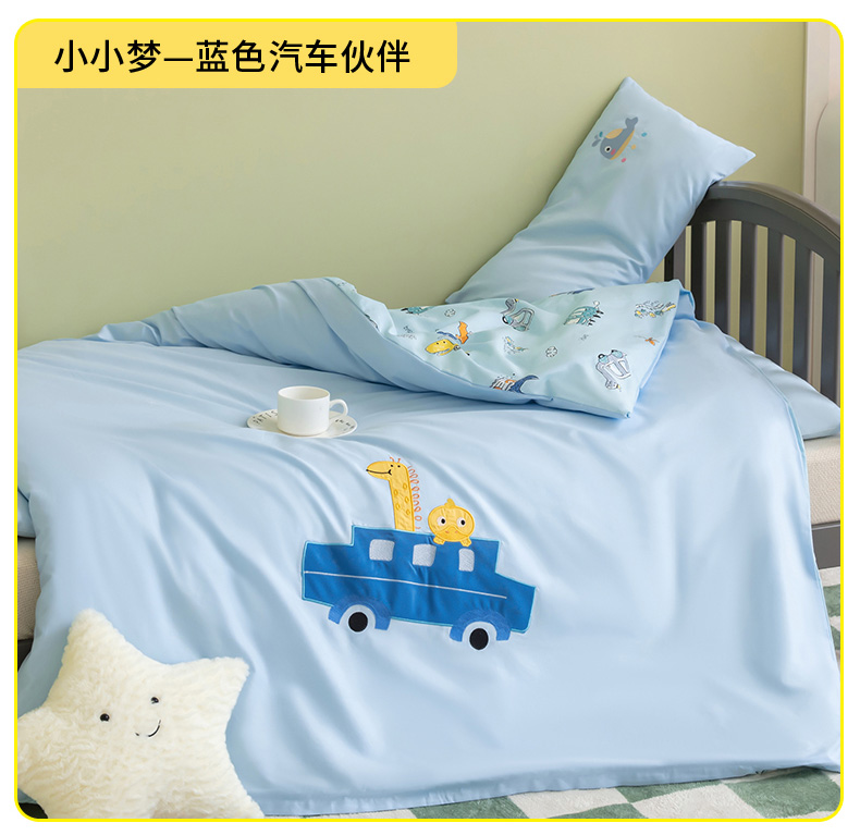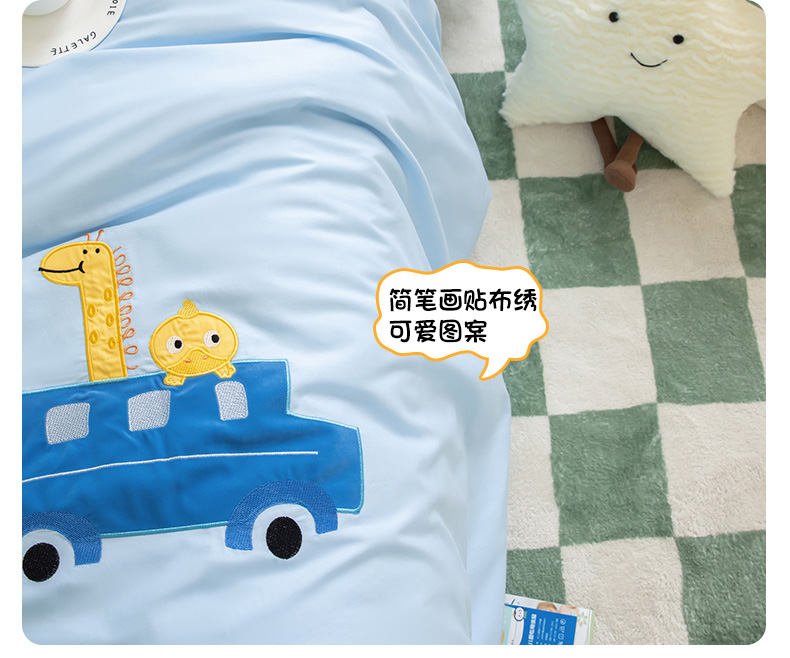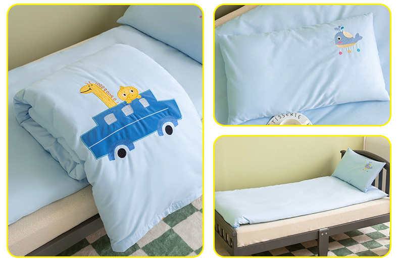 当前位置: 91家纺网 > 商品网购 > 床品套件 > 三件套 > 喜多兔 2023新款40支13372纯棉小小梦绣花幼儿园被子三件套 蓝色汽车伙伴