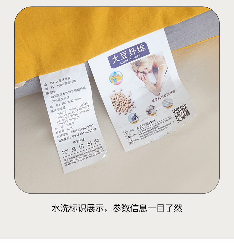 • 填充纤维种类: 大豆蛋白改性聚酯纤维