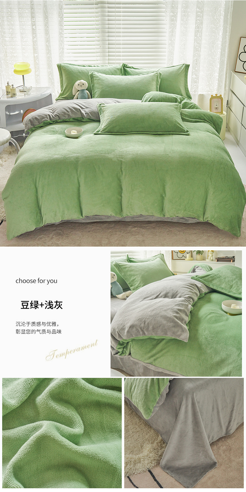 当前位置: 91家纺网 > 商品网购 > 床品套件 > 四件套 > 牛奶绒四件套 > 慕晨纯色牛奶绒法莱绒拼色三四件套单被套 豆绿+浅灰