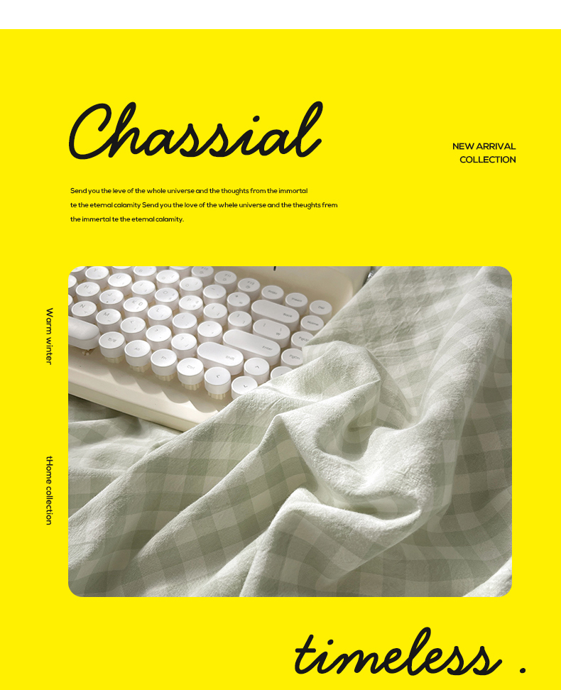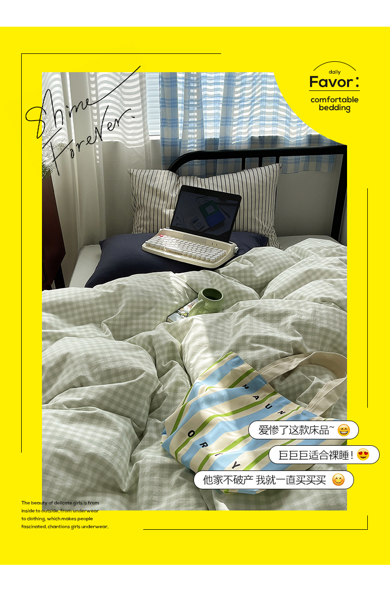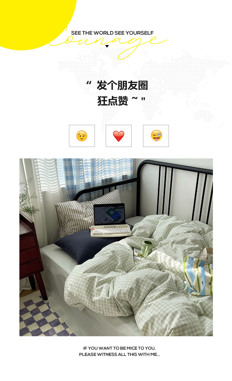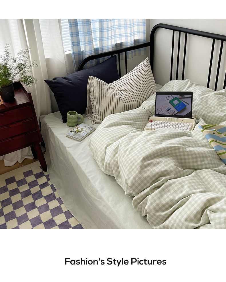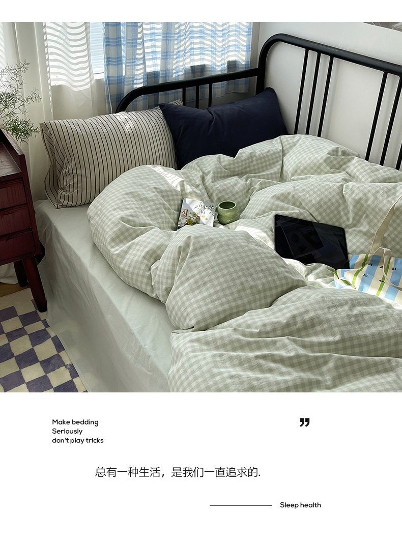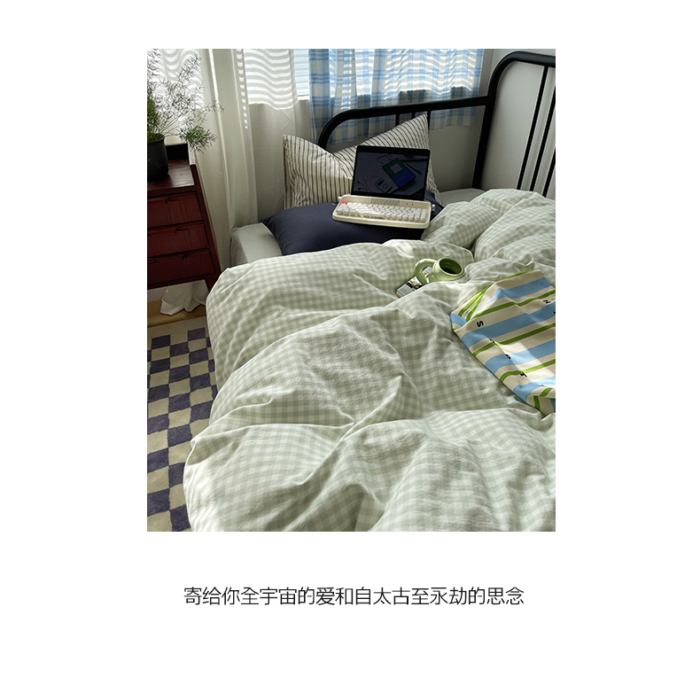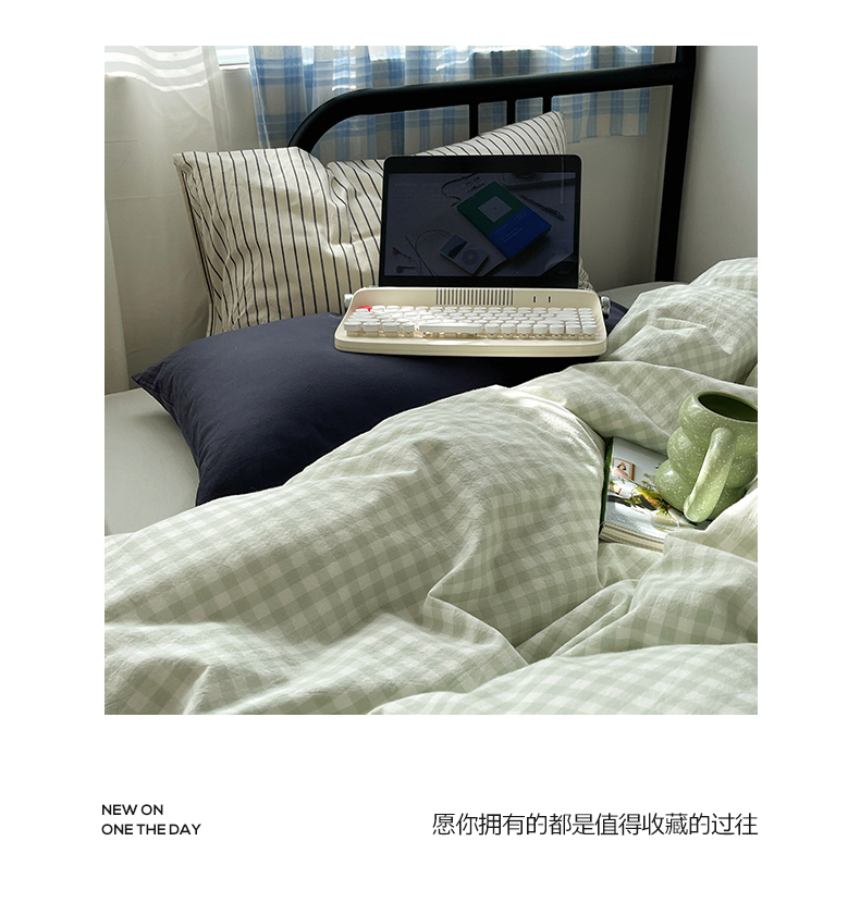 六巷胡同 2023新款ins博主风洋气小格子篇四件套 薄荷绿小格