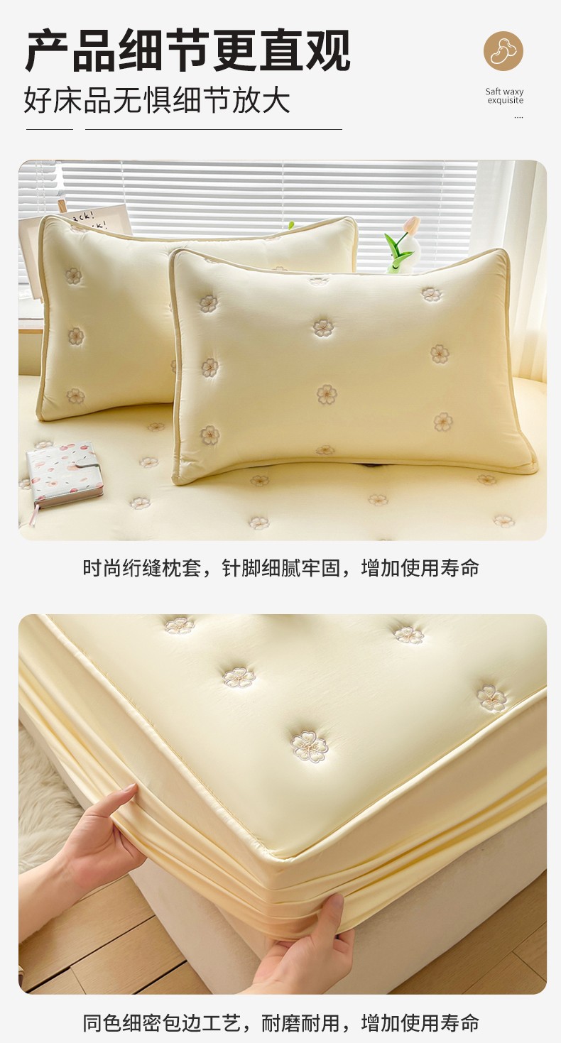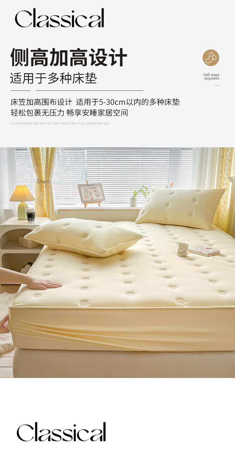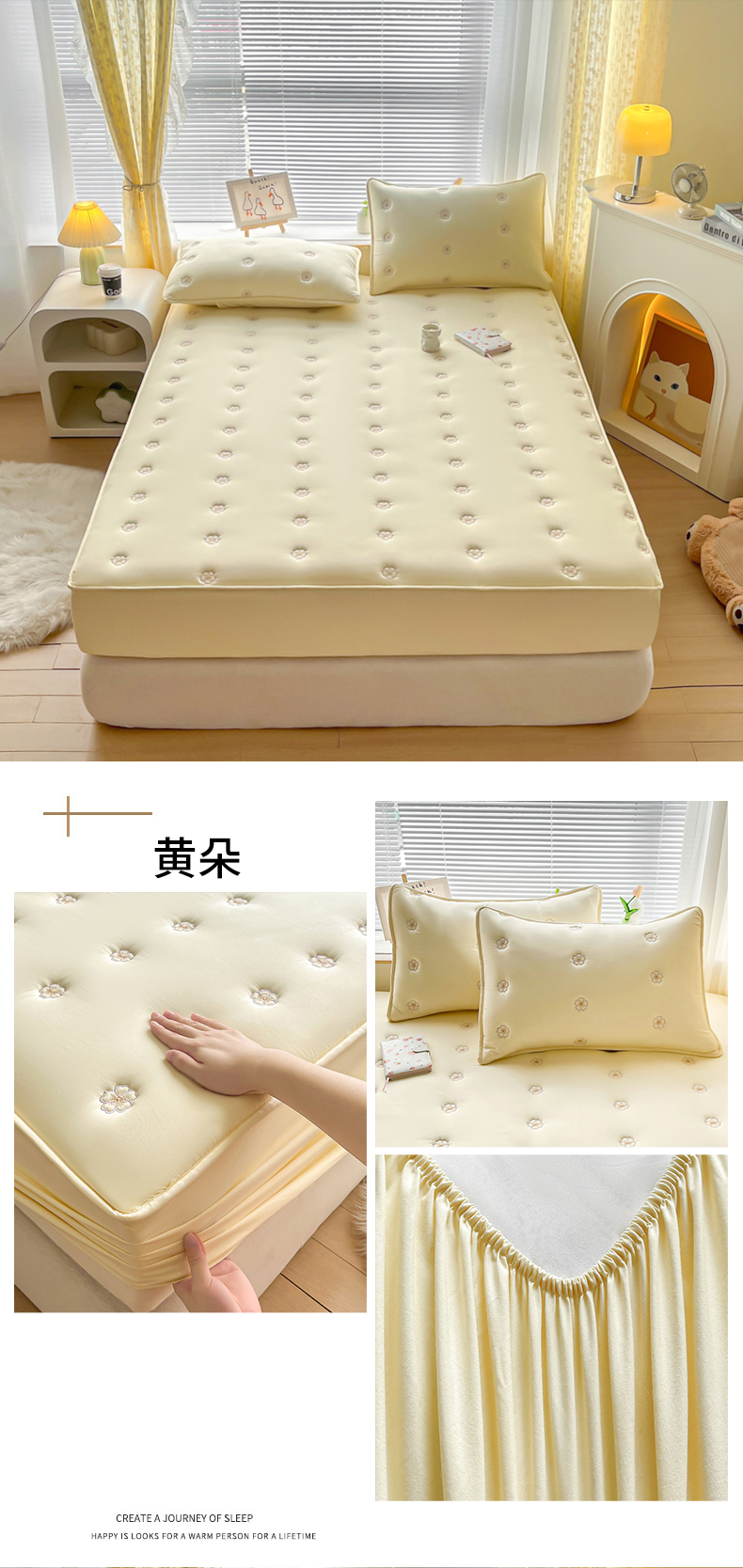 商品名称:吉祥 2023新款水洗棉夹棉床笠-朵系列 黄朵