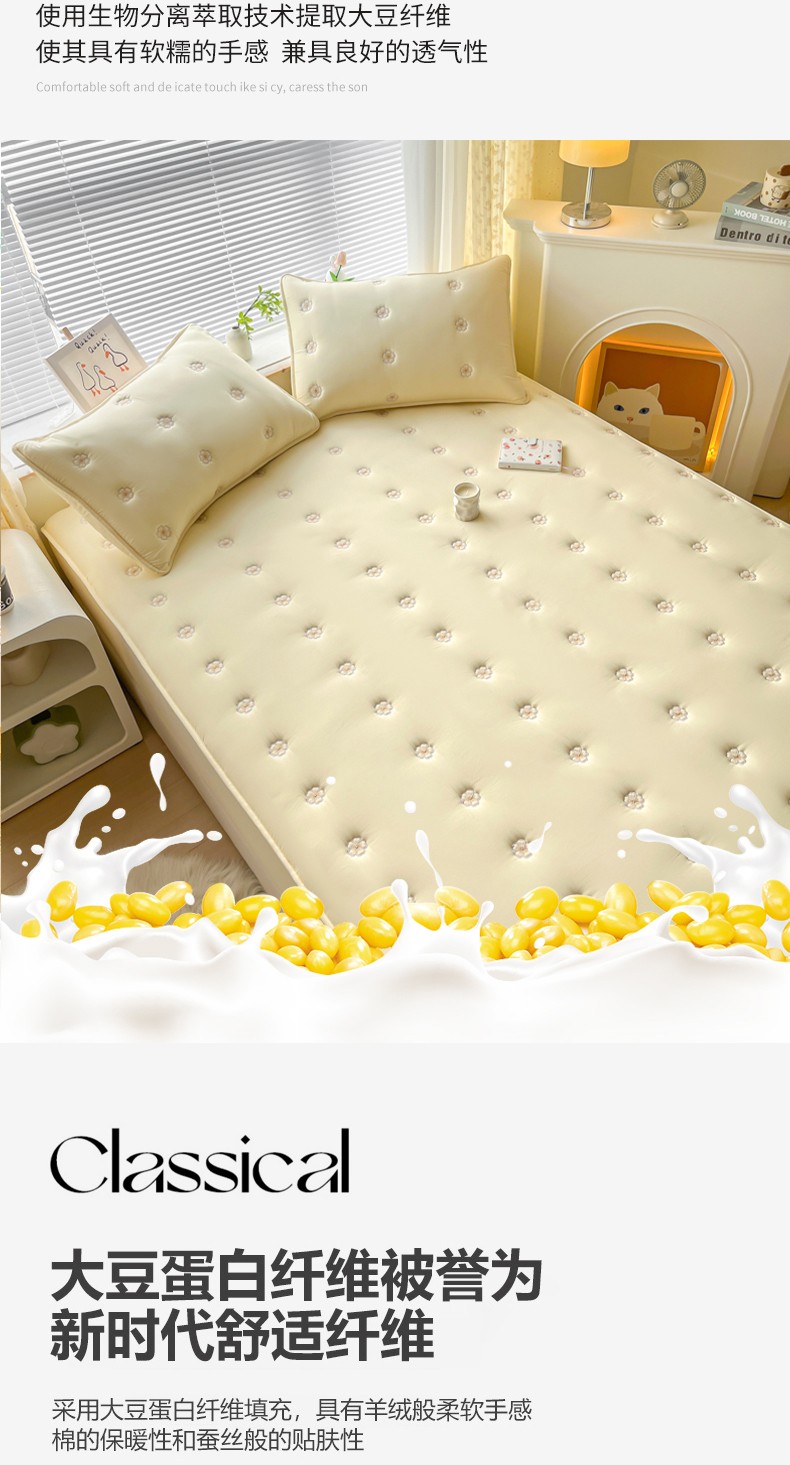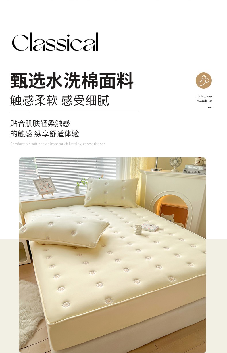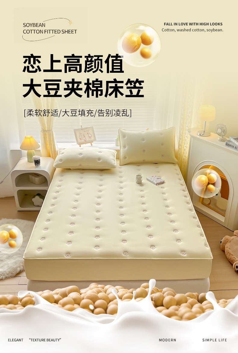 商品名称:吉祥 2023新款水洗棉夹棉床笠-朵系列 黄朵